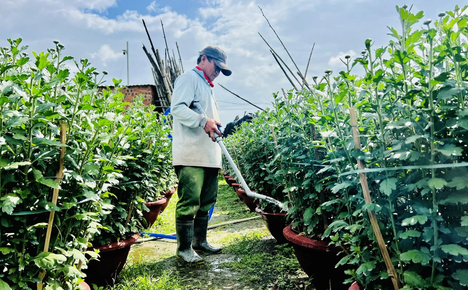 Hiện các hoạt động sản xuất tại làng hoa Hà Đông vẫn diễn ra liên tục, từ tưới nước, ngắt nụ, bón phân, giãn chậu đến điều chỉnh ánh sáng, nhằm bảo đảm hoa sinh trưởng đồng đều, nở đẹp và đúng thời điểm phục vụ thị trường Tết.