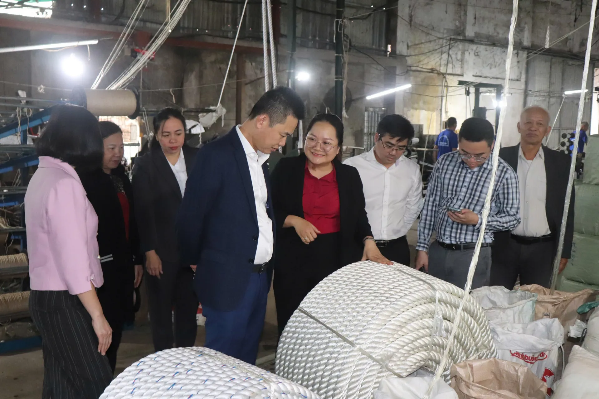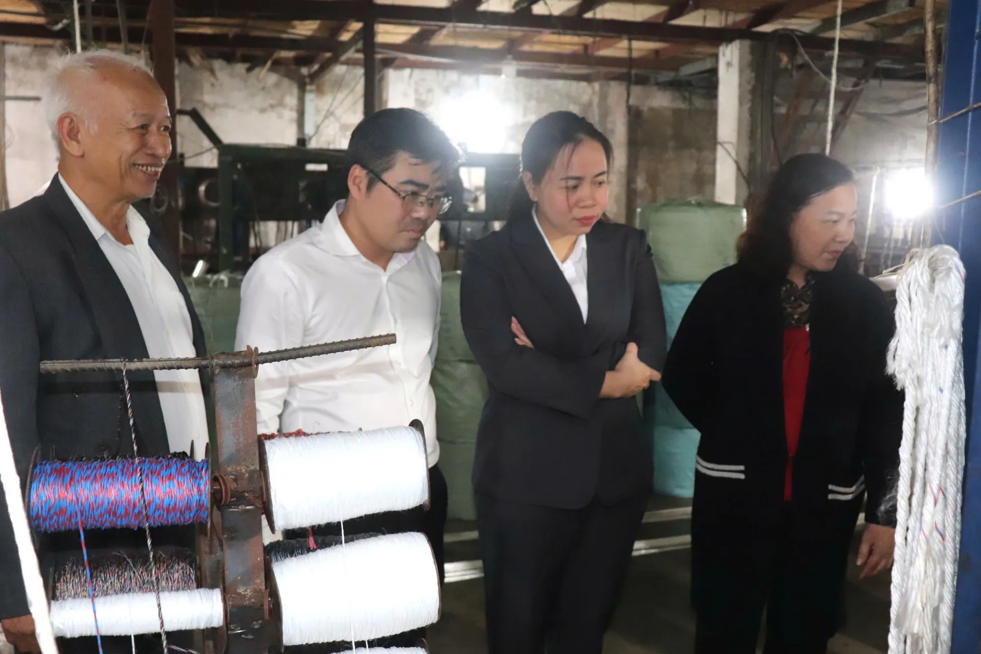 Bí thư Đảng ủy xã Phú Xuyên Nguyễn Xuân Thanh cùng cán bộ địa phương thăm, kiểm tra hoạt động sản xuất làng nghề cước lưới truyền thống trên địa bàn