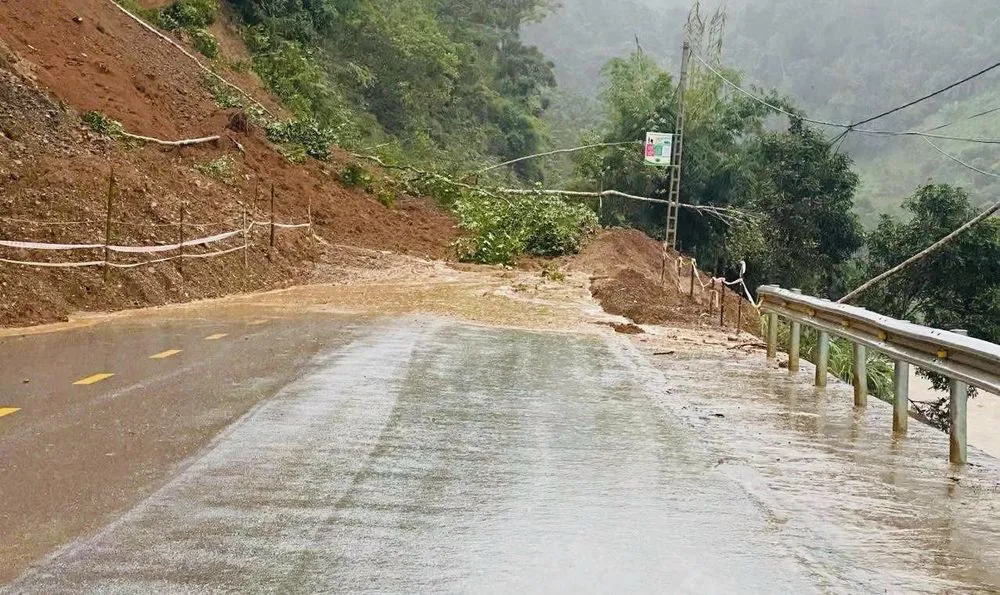 Nhiều tuyến đường bị sạt lở nghiêm trọng gây ách tắc giao thông trên địa bàn tỉnh Thái Nguyên. Ảnh: Lê Hanh