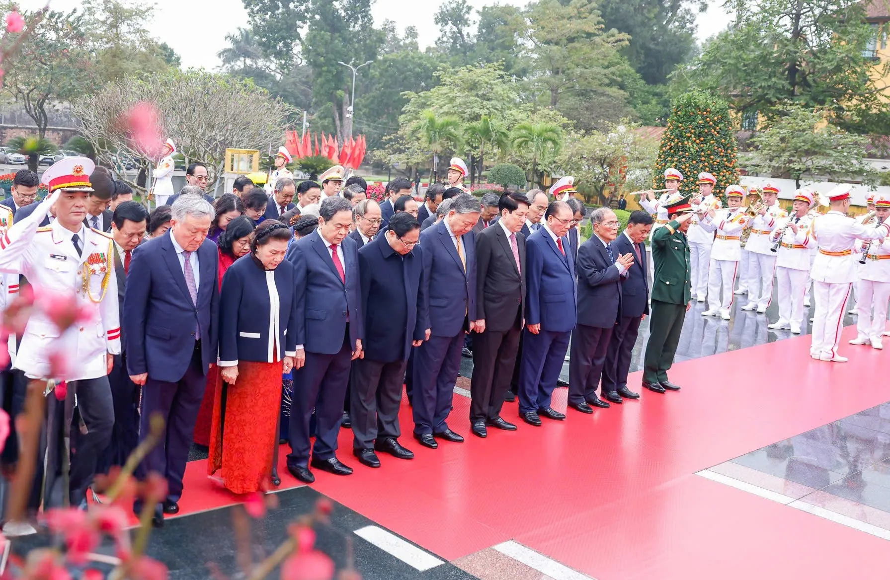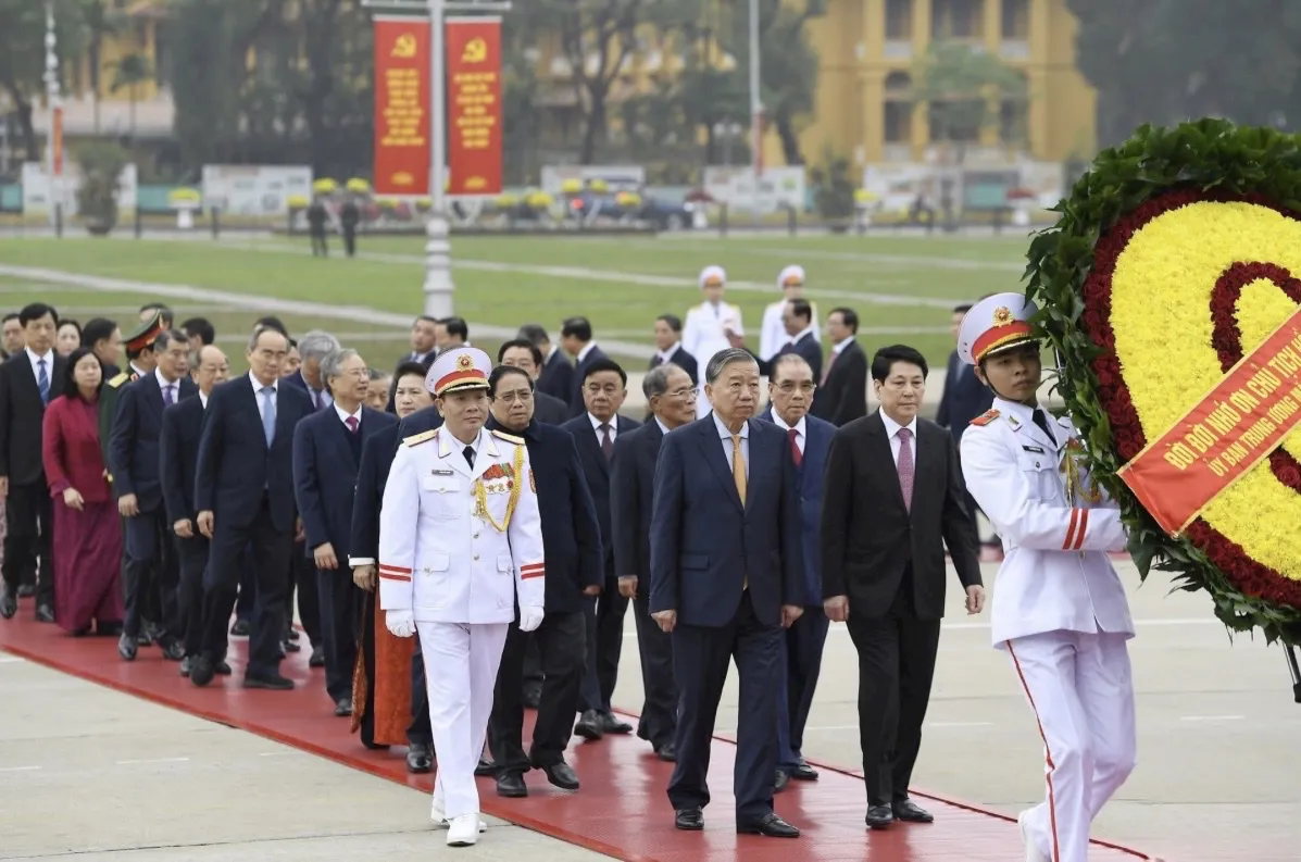 Kinhtedothi - Sáng 13/2, Đoàn đại biểu Ban Chấp hành Trung ương Đảng, Chủ tịch nước, Quốc hội, Chính phủ, Ủy ban Trung ương MTTQ Việt Nam đã đặt vòng hoa, vào Lăng viếng Chủ tịch Hồ Chí Minh và dâng hương tưởng niệm các Anh hùng liệt sĩ nhân dịp Tết Nguyên đán Bính Ngọ 2026.