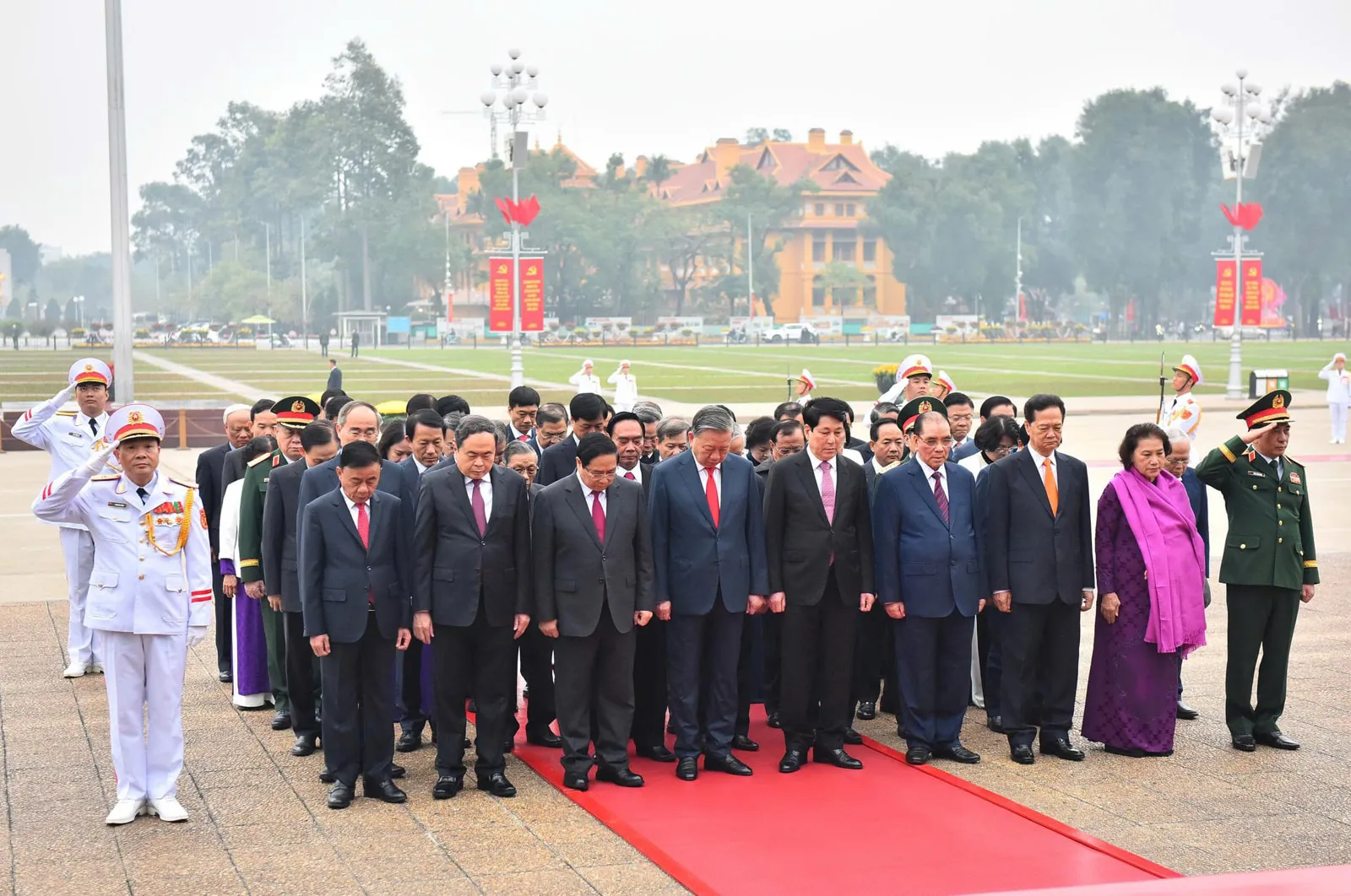 Tổng Bí thư Tô Lâm cùng các đồng chí lãnh đạo, nguyên lãnh đạo Đảng, Nhà nước vào Lăng viếng Chủ tịch Hồ Chí Minh.