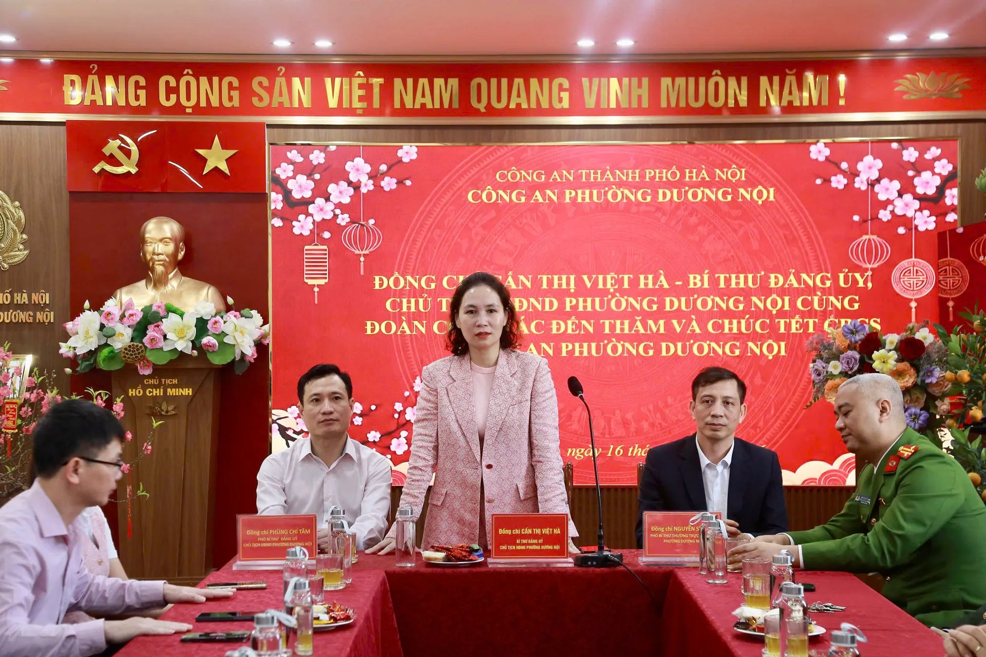 Bí thư Đảng ủy, Chủ tịch HĐND phường Cấn Thị Việt Hà lưu ý, trong dịp Tết Nguyên đán Bính Ngọ, tập thể cán bộ chiến sĩ Công an phường, Ban CHQS phường cần nêu cao tinh thần trách nhiệm, khắc phục khó khăn, thực hiện ứng trực 24/24h góp phần đảm bảo cho Nhân dân toàn phường đón Tết cổ truyền vui tươi, an toàn, lành mạnh.