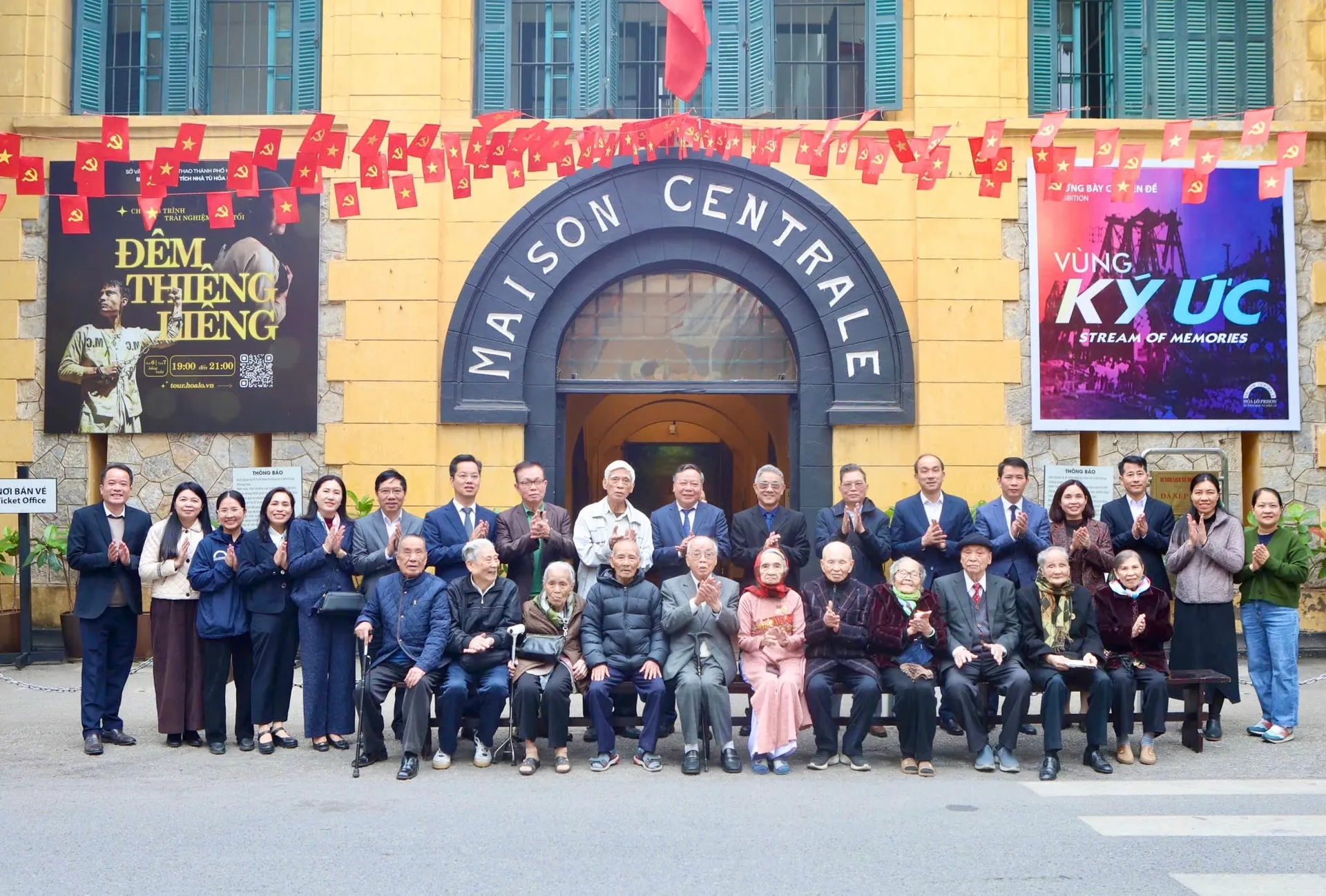 Phó Bí thư Thường trực Thành ủy Hà Nội Nguyễn Văn Phong chụp ảnh lưu niệm cùng Ban Đại diện chiến sĩ cách mạng bị địch bắt tù đày thành phố Hà Nội.