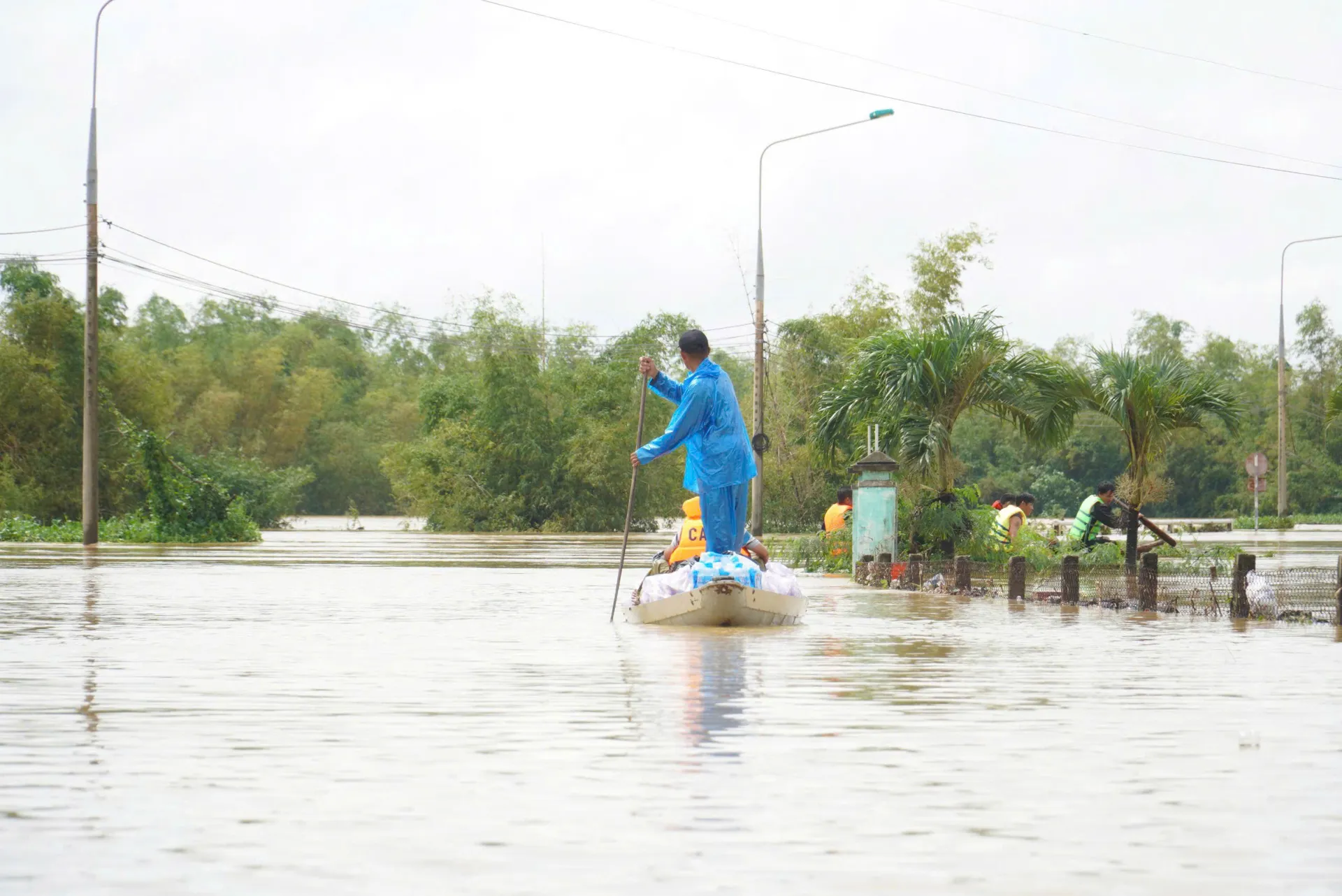 Đây là khu vực bị chìm sâu trong biển nước và cô lập hoàn toàn. Các lực lượng chức năng phải dùng phương tiện thuyền hoặc ca nô mới có thể tiếp cận để mang đồ ăn, nước uống và vật dụng thiết yếu để cứu trợ.