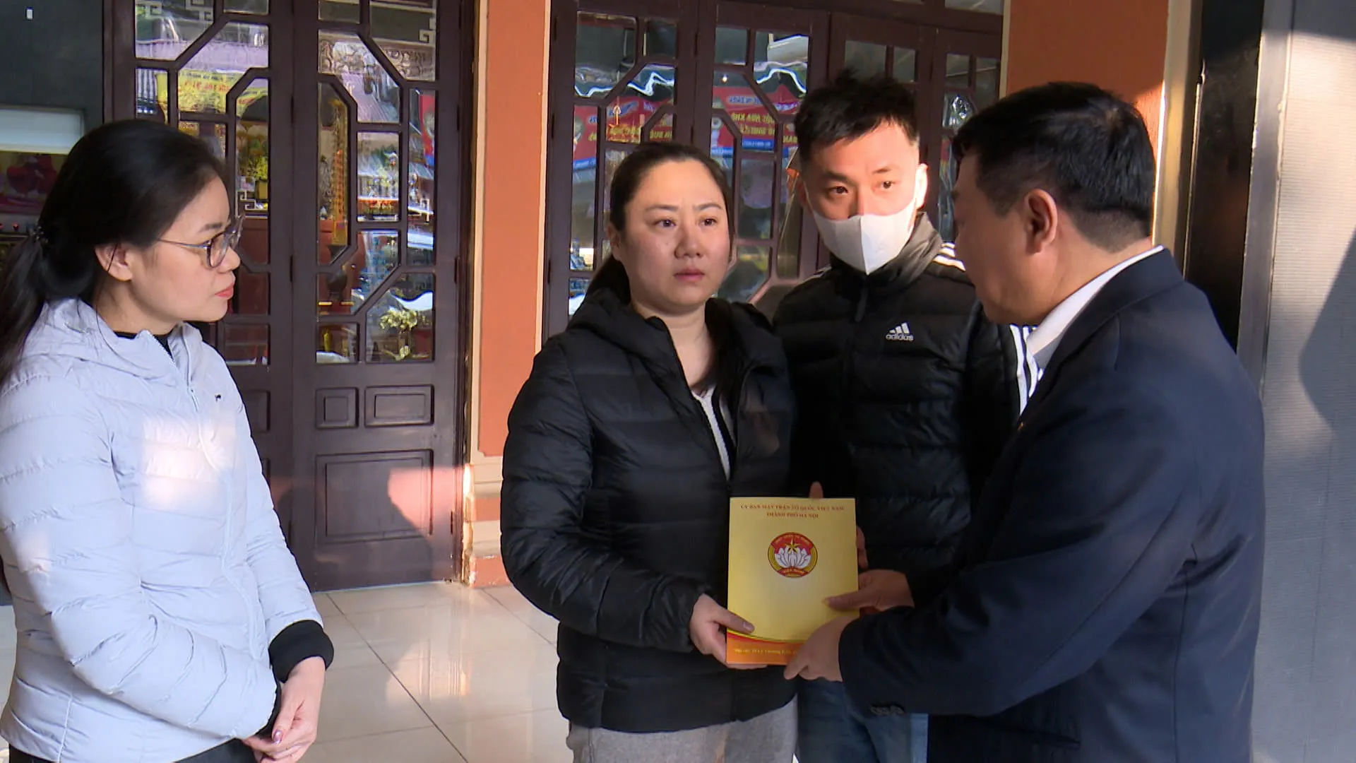 Phó Chủ tịch Thường trực Ủy ban Mặt trận Tổ quốc Việt Nam TP Hà Nội Phạm Anh Tuấn trao hỗ trợ và chia sẻ với những mất mát của gia đình nạn nhân