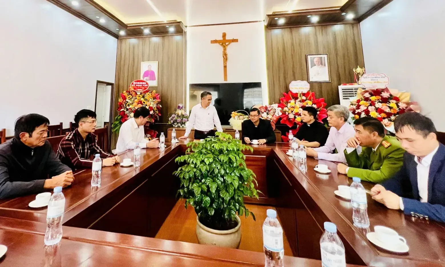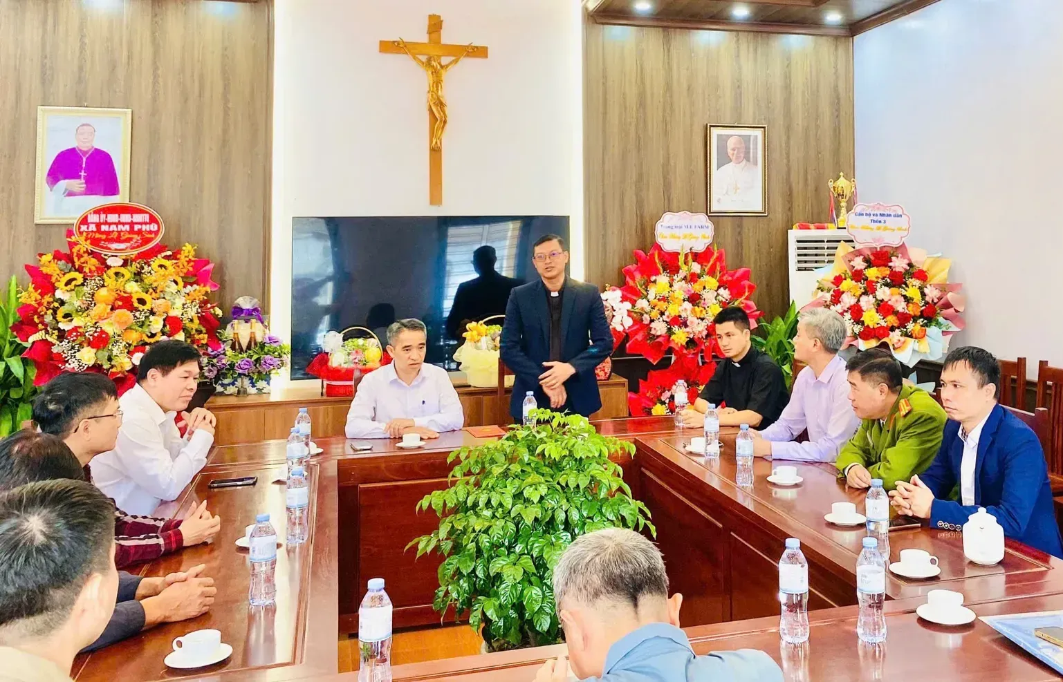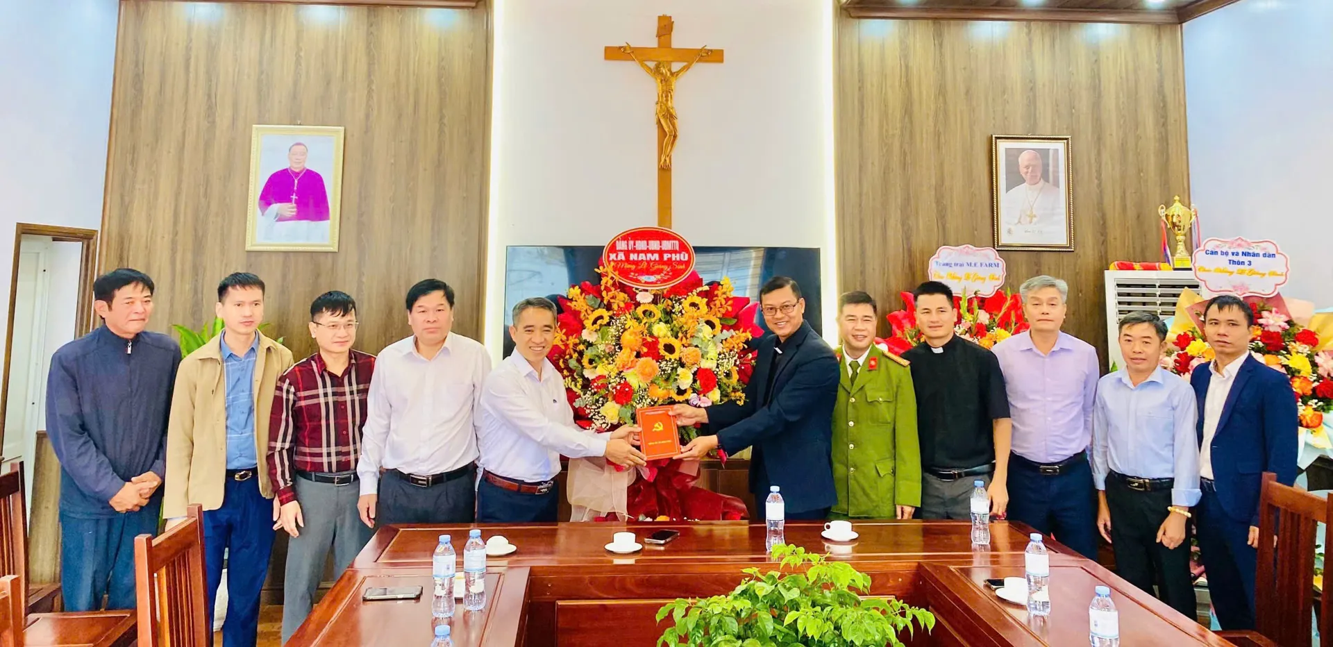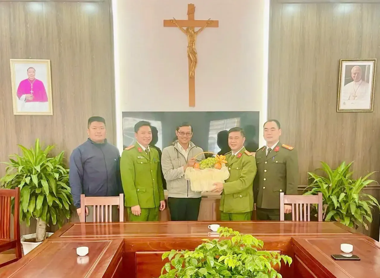 Đoàn công tác của Công an xã Nam Phù thăm, chúc mừng các linh mục, chức sắc và đồng bào Công giáo.