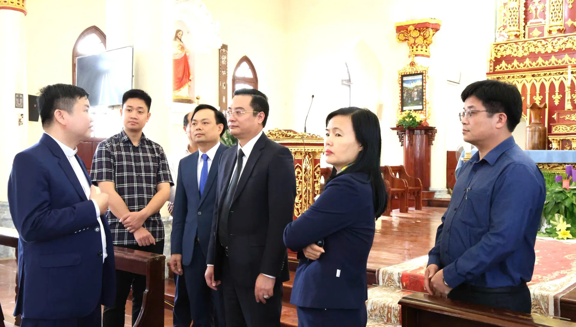 Lãnh đạo xã Tam Hưng thăm, chúc mừng Giáo xứ Đàn Giản