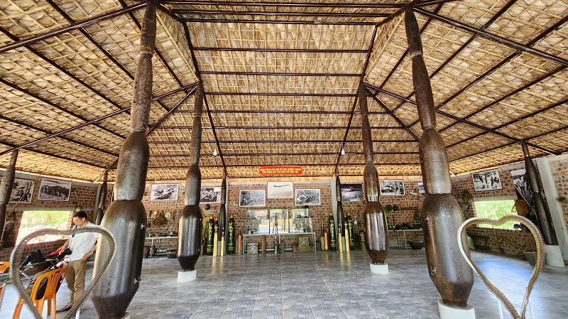 Ngay gần đó là hố bom cùng những mảnh bom được ông tái hiện để thấy sự ác liệt của chiến tranh. “Những năm sau giải phóng, hố bom chi chít nhưng giờ thay vào đó là khu dân cư, nhà máy. Thế nên, những hố bom là điều giờ gần như tìm không thấy ở mảnh đất Vĩnh Linh”, ông Chức cười.