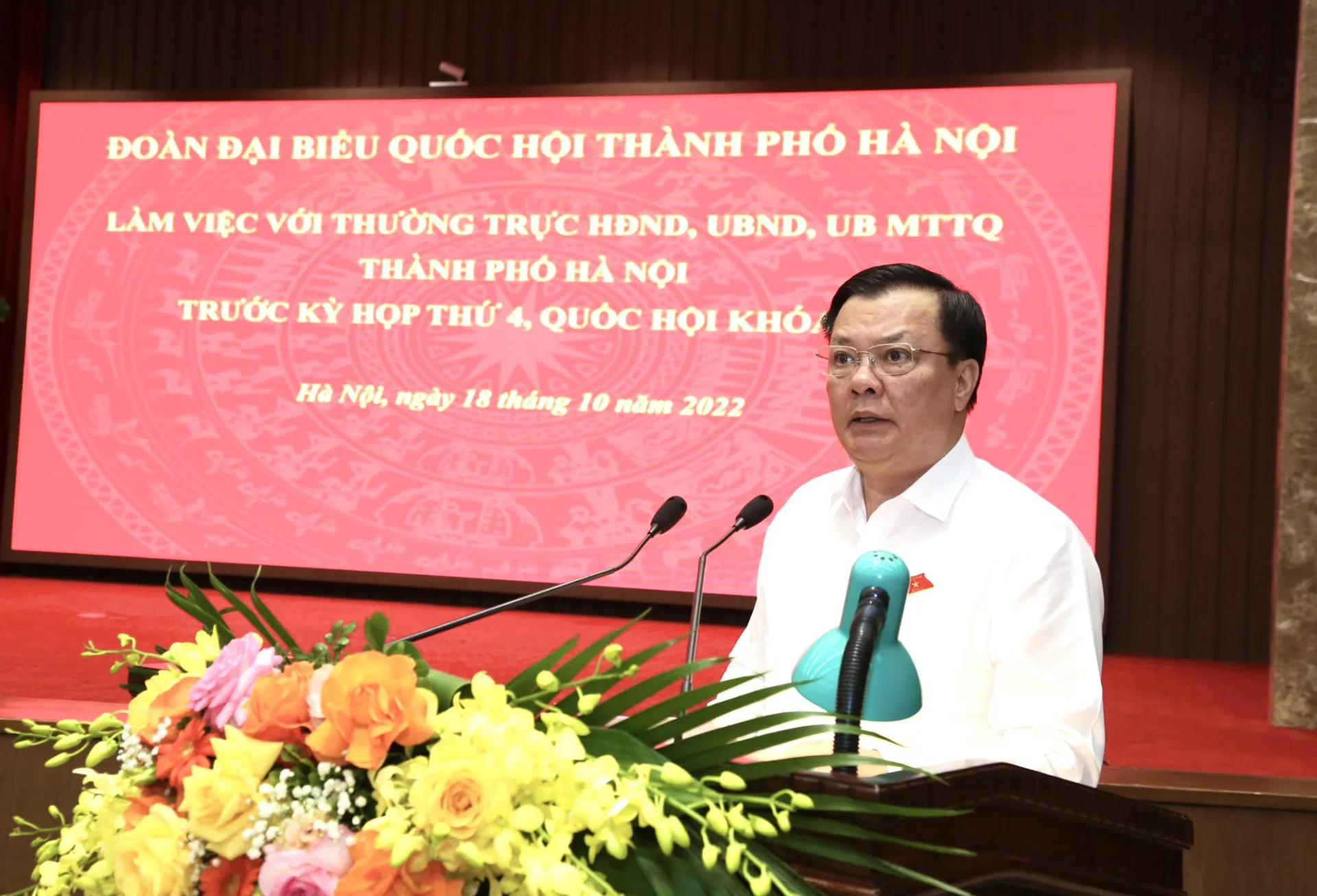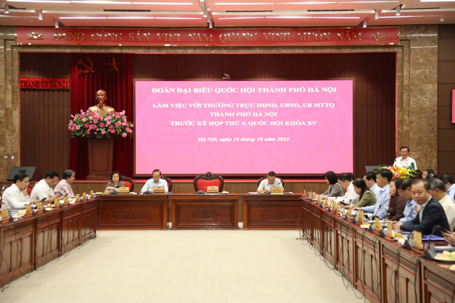 Ủy viên Bộ Chính trị, Bí thư Thành uỷ Đinh Tiến Dũng - Trưởng Đoàn đại biểu Quốc hội TP Hà Nội; Ủy viên T.Ư Đảng, Chủ tịch UBND TP Trần Sỹ Thanh; Chủ tịch HĐND TP Nguyễn Ngọc Tuấn; Phó Trưởng đoàn chuyên trách Đoàn đại biểu Quốc hội TP Hà Nội Phạm Thị Thanh Mai chủ trì hội nghị. Tham dự hội nghị còn có các Ủy viên Ban Thường vụ Thành uỷ, các đại biểu Quốc hội thuộc Đoàn đại biểu Quốc hội TP Hà Nội...