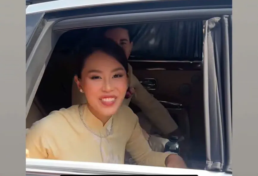 tỷ phú Johnathan Hạnh Nguyễn và phu nhân Thủy Tiên trở thành tâm điểm khi xuất hiện trong ngày trọng đại của con gái. Ông bà đón khách và thoải mái để truyền thông tác nghiệp, thể hiện sự cởi mở hiếm thấy trong sự kiện riêng tư của gia đình.