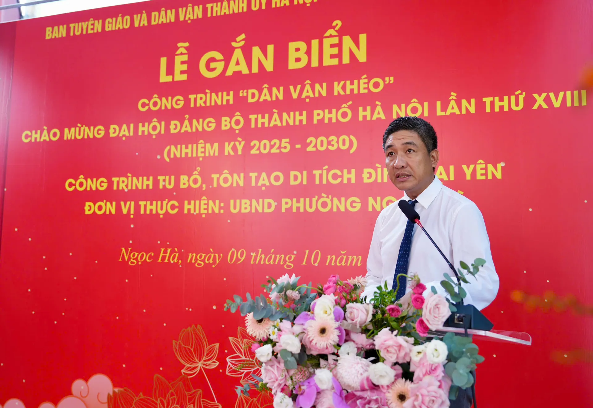 Kinhtedothi - Sáng 9/10, Đảng ủy - HĐND - UBND - Ủy ban Mặt trận Tổ quốc Việt Nam phường Ngọc Hà tổ chức lễ gắn biển công trình “Dân vận khéo” tu bổ, tôn tạo di tích Đình Đại Yên, chào mừng Đại hội đại biểu lần thứ XVIII Đảng bộ TP Hà Nội.