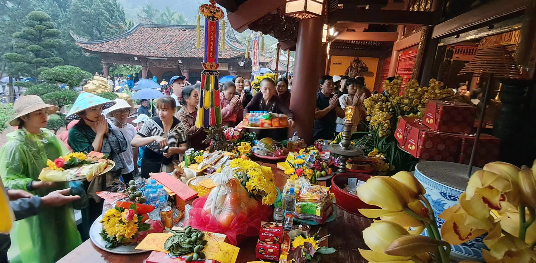 Người dân và du khách dâng lễ hiến Phật tại Lễ hội chùa Hương 2026. Ảnh: Hoài Nam