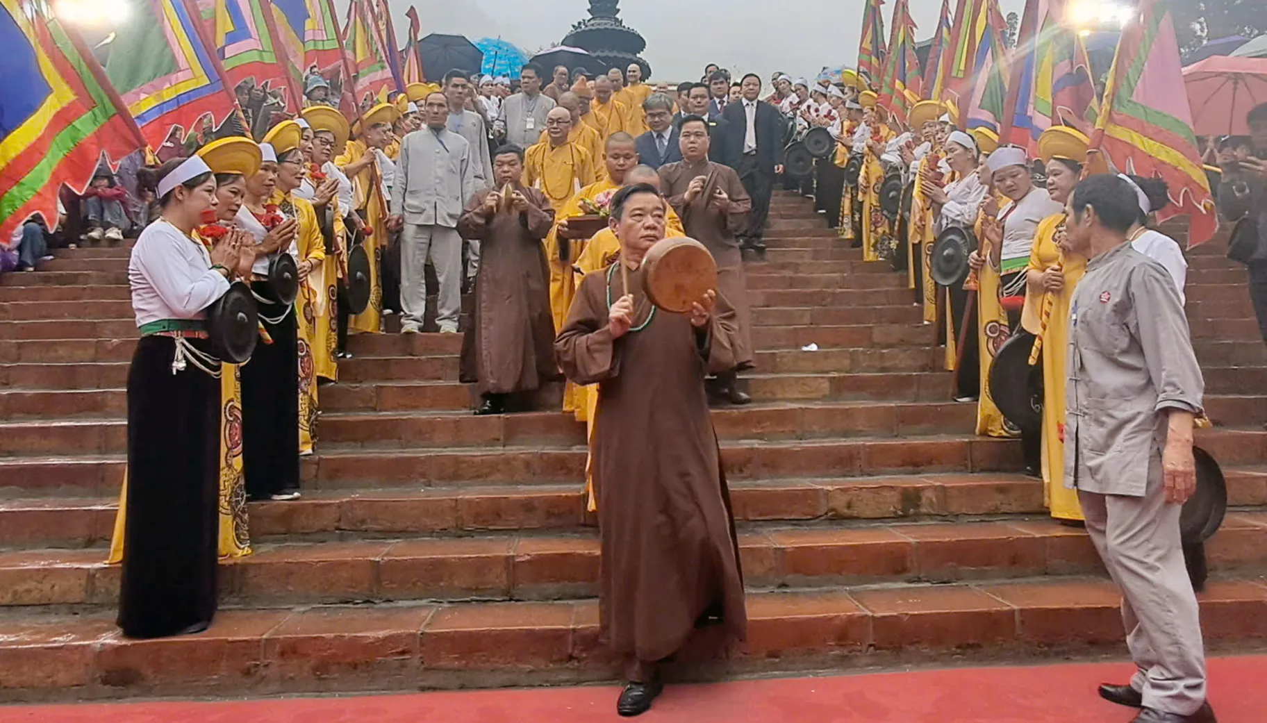 Chư tăng thỉnh chuông-khánh và lễ vật khai hội chùa Hương 2026. ẢNh: Hoài Nam