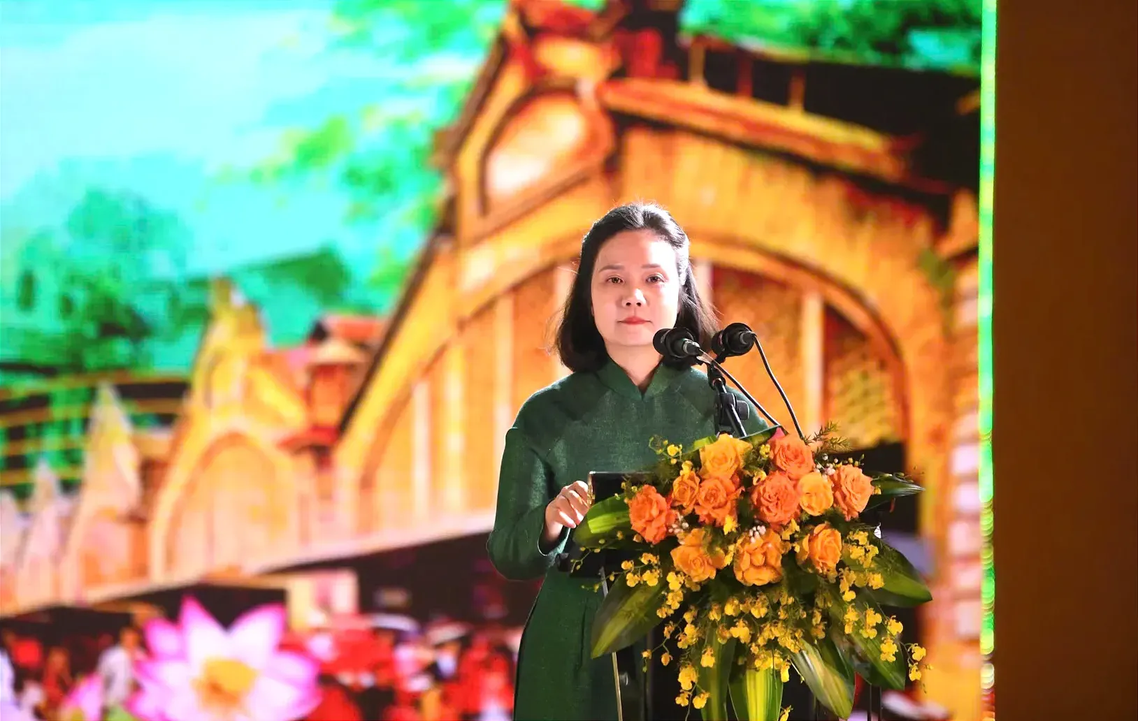 Phó Giám đốc Sở VH&TT Lê Thị Ánh Mai phát biểu tại buổi lễ.