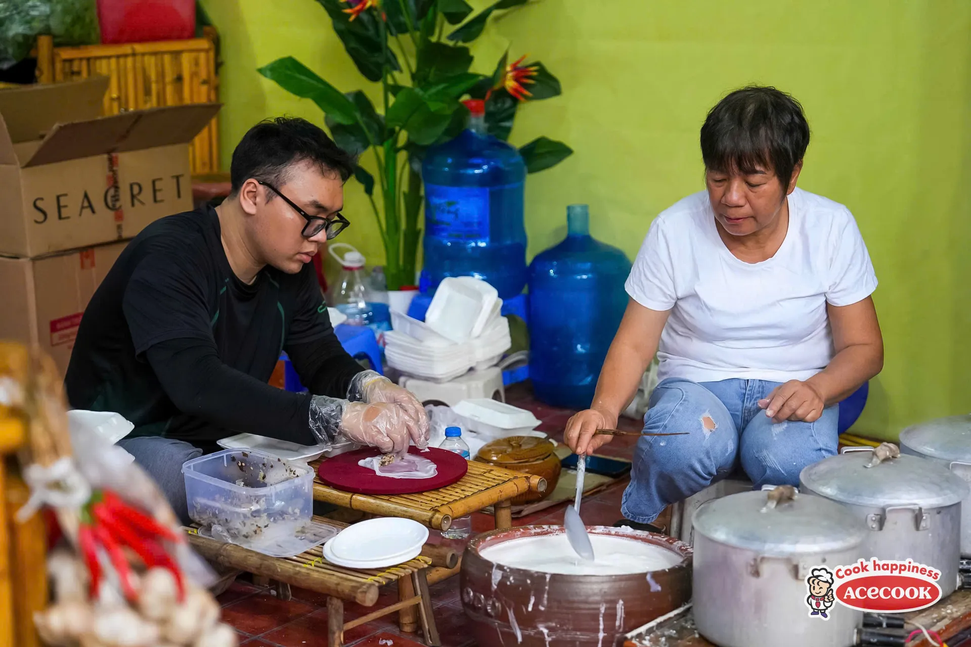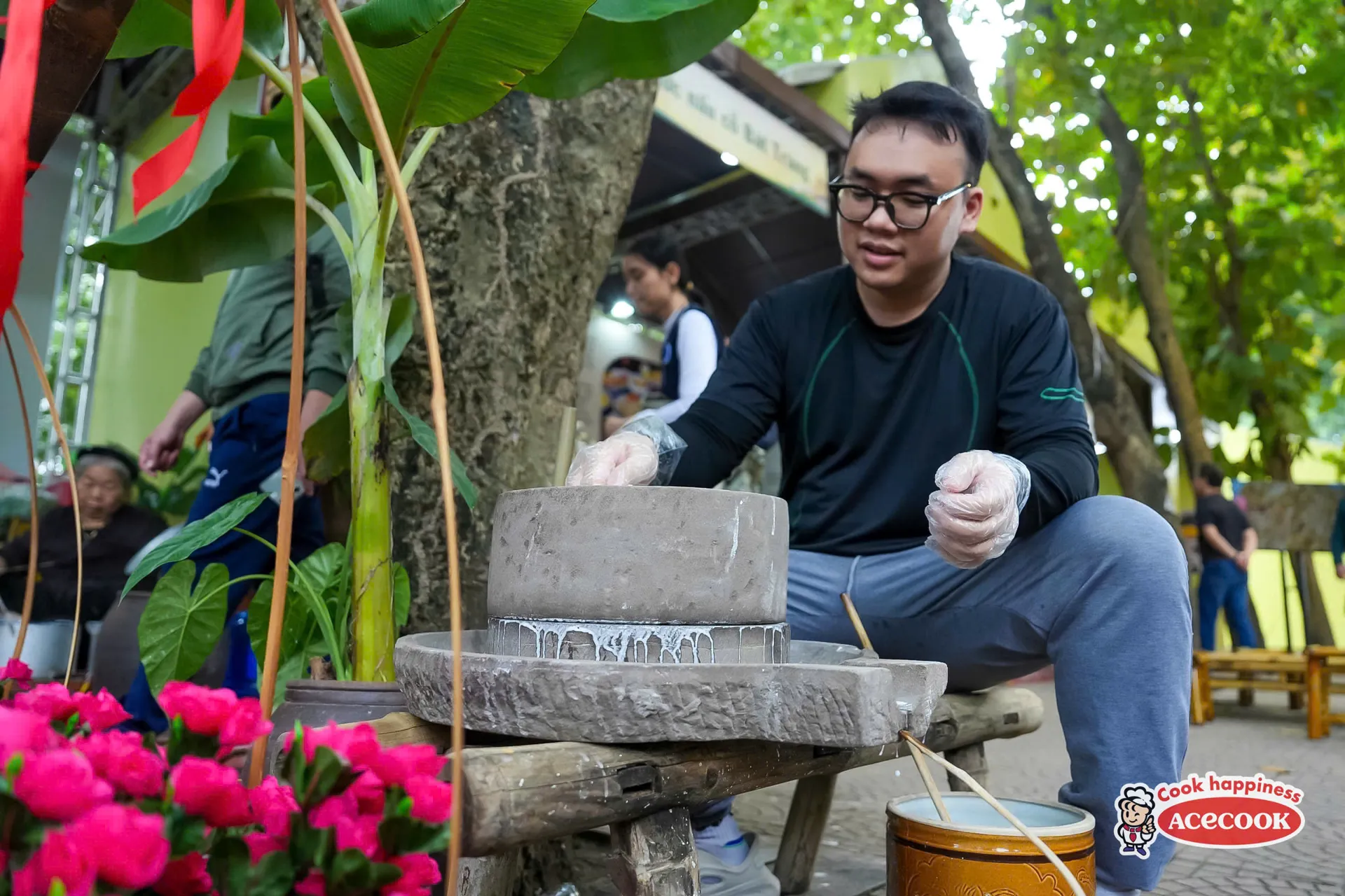 Bên cạnh đó, khu trải nghiệm giã giò bằng tay với cối đá theo lối cổ truyền được tổ chức xuyên suốt các ngày lễ hội. Theo ông Sơn, trong điều kiện hiện nay, giã tay chủ yếu mang tính trải nghiệm và trình diễn. Nếu áp dụng hoàn toàn vào sản xuất kinh doanh thì không khả thi, vì năng suất thấp và giá thành cao. Nhưng thông qua trải nghiệm này, công chúng sẽ hiểu rõ hơn giá trị lao động và cái tâm của người làm nghề.