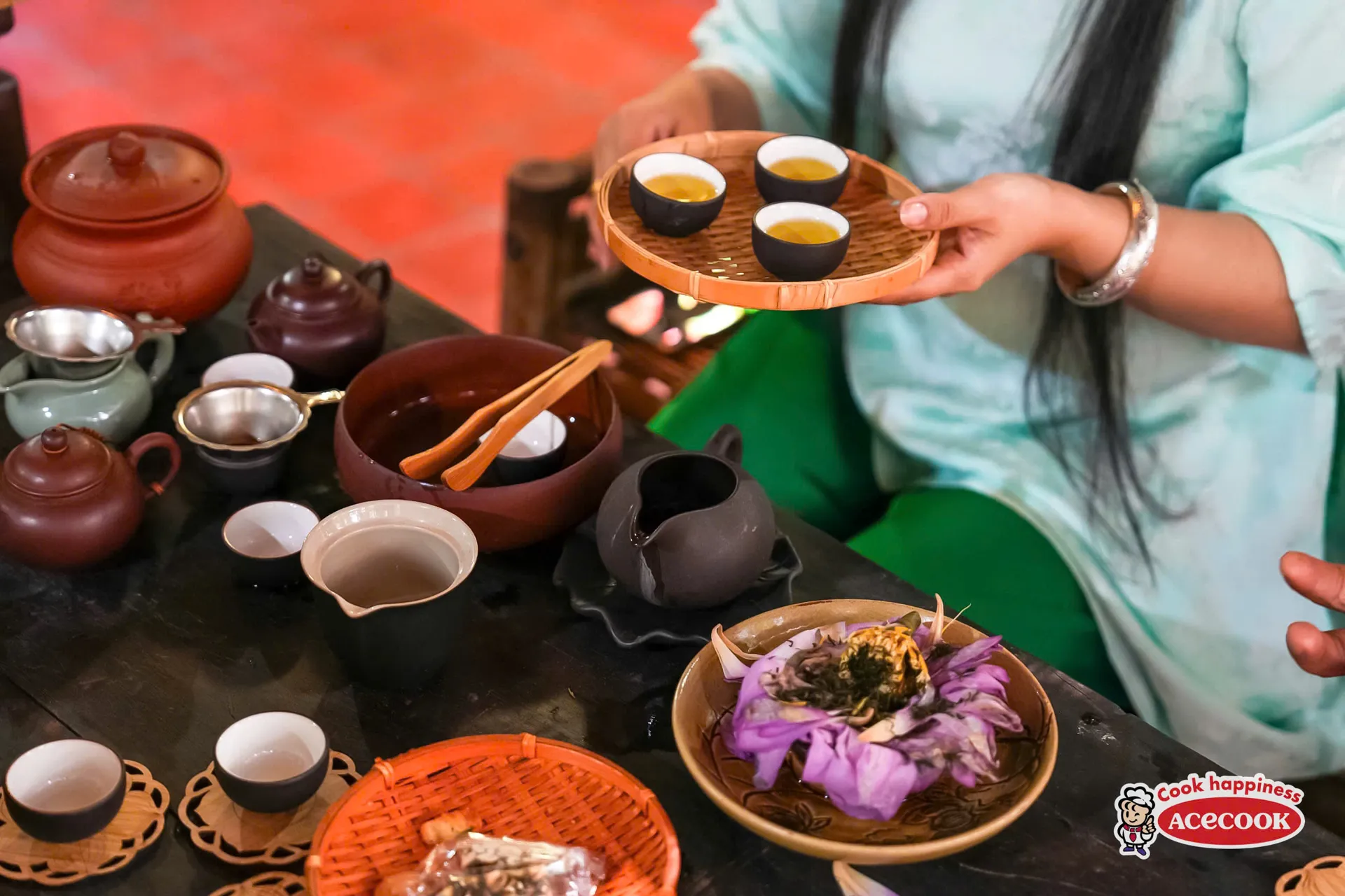 Không gian trải nghiệm trà sen tại Lễ hội Văn hóa Ẩm thực Hà Nội.