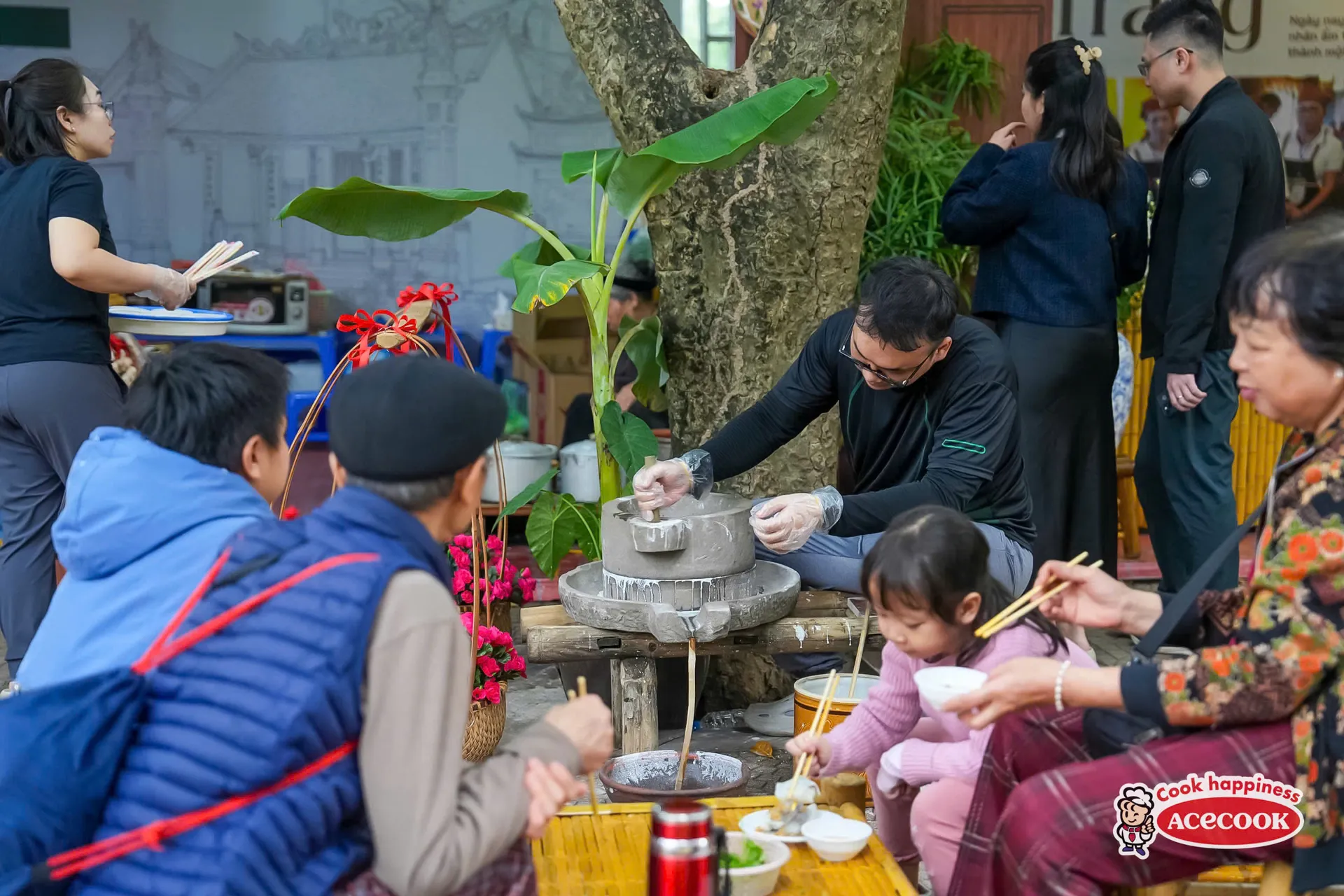 Không gian trải nghiệm bánh cuốn Thanh Trì tại Lễ hội Văn hóa Ẩm thực Hà Nội.