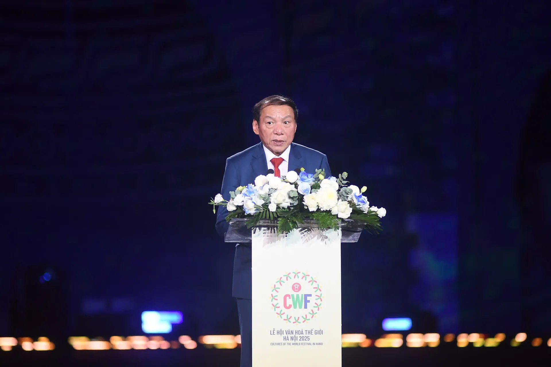 Phát biểu tại Lễ bế mạc, Bộ trưởng Bộ VHTT&DL Nguyễn Văn Hùng nhấn mạnh, phát triển bền vững, sáng tạo và bao trùm đã trở thành mục tiêu của nhiều quốc gia trên thế giới, Việt Nam cũng không nằm ngoài quỹ đạo chung. Lễ hội Văn hóa thế giới lần thứ nhất tại Việt Nam là một minh chứng sống động; được khởi nguồn từ sáng kiến của bà Ngô Phương Ly - phu nhân Tổng Bí thư Tô Lâm về việc tổ chức một sự kiện văn hóa mang tầm vóc quốc tế tại thủ đô Hà Nội - nơi tôn vinh vẻ đẹp riêng biệt của mỗi quốc gia - khẳng định sức mạnh của văn hóa trong việc kết nối con người với con người - và là một bức tranh sống động về sự đoàn kết trong đa dạng của nhân loại.