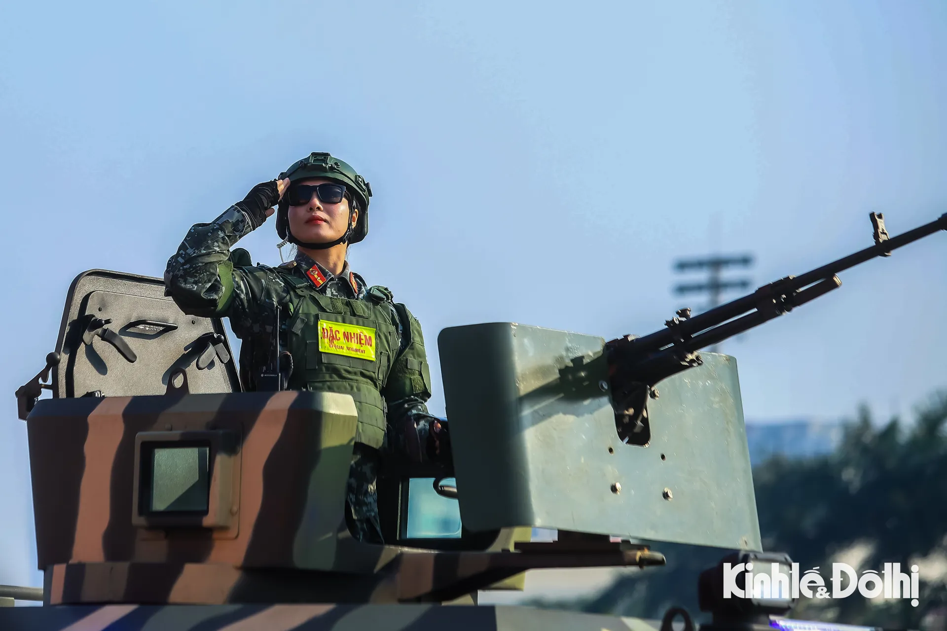 Khối xe tác chiến, chống khủng bố, xe bọc thép chống đạn của lực lượng Cảnh sát đặc nhiệm tham gia diễu hành phương tiện đặc chủng của Bộ Công an tại buổi lễ.