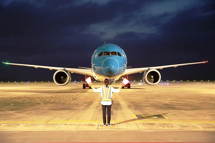 | Phi công phải tuyệt đối tuân thủ theo các động tác của nhân viên đánh tín hiệu khi vào bến đỗ. Ảnh: Tuấn Vũ |