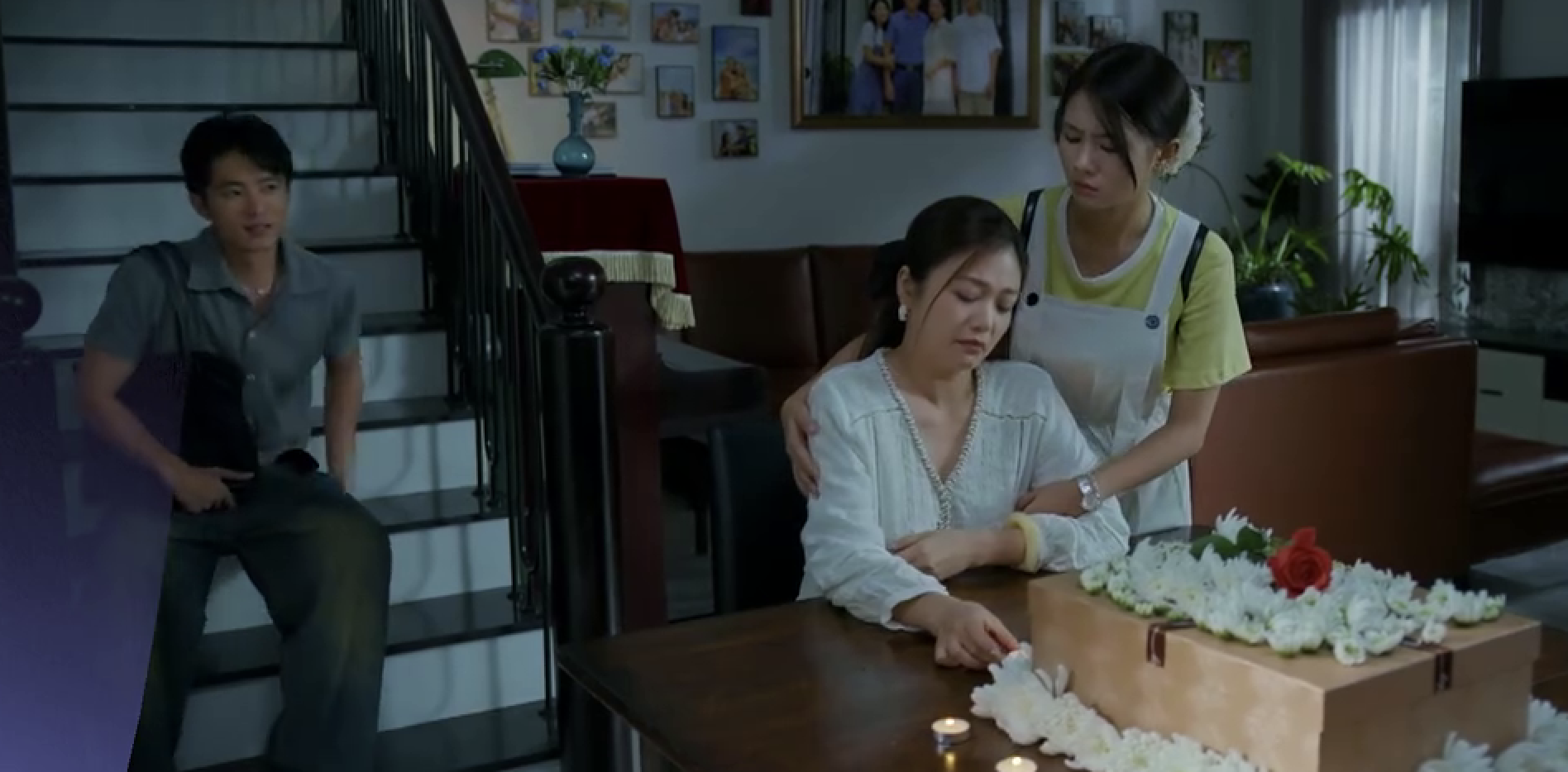 Trong khi đó, bà Ánh đau buồn vì chú chó Sofia yêu quý bị chết. Bà không chỉ gọi cho chồng, mà còn gọi cho hai con. Dương (Quỳnh Trang) - con gái út về trước, dùng rất nhiều lời khéo léo để dỗ dành mẹ. "Thôi nín đi công chúa của con. Có con ở đây rồi, mẹ phải mạnh mẽ lên chứ" - Dương vỗ về mẹ.