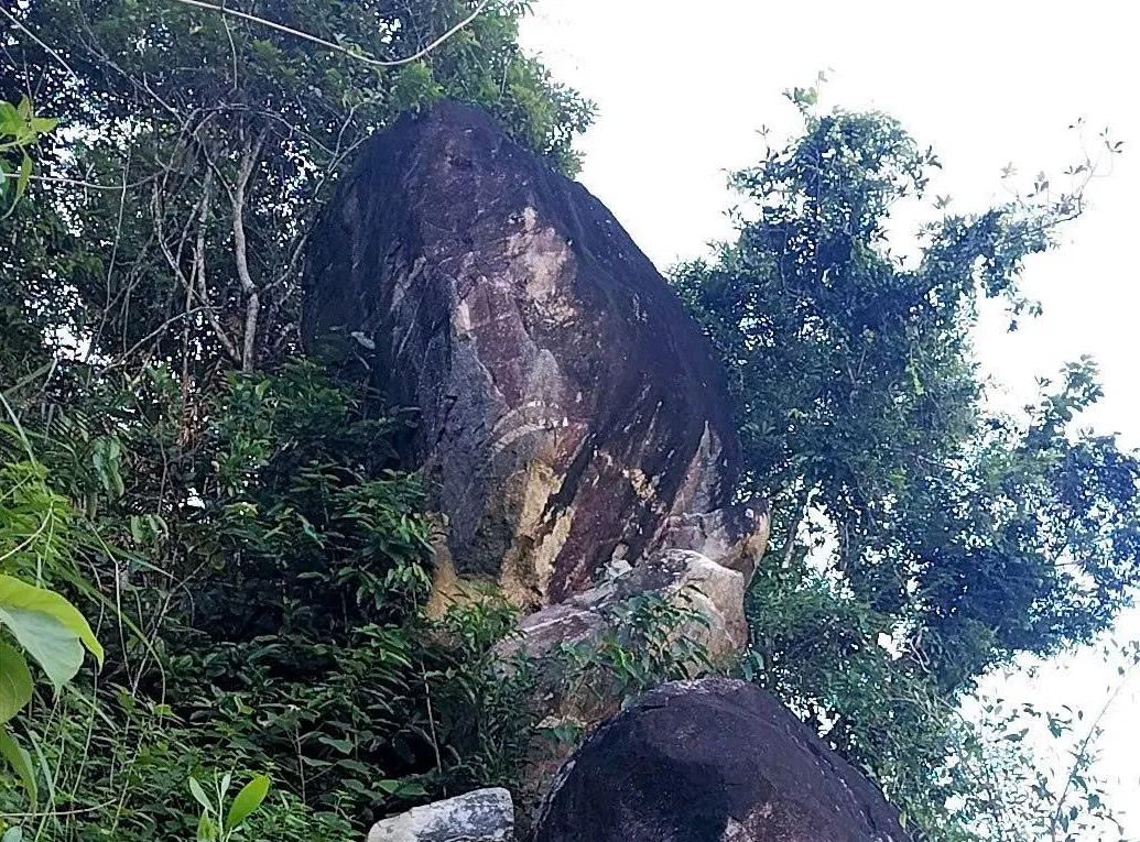Qua kiểm tra, đoàn ghi nhận khu vực này có khối đá lớn, chiều rộng hơn 5 mét, cao khoảng 8 mét, nặng hàng chục tấn, nằm chênh vênh gần đỉnh núi trên nền đất yếu. Khu vực này có độ cao hàng trăm mét, độ dốc rất lớn.