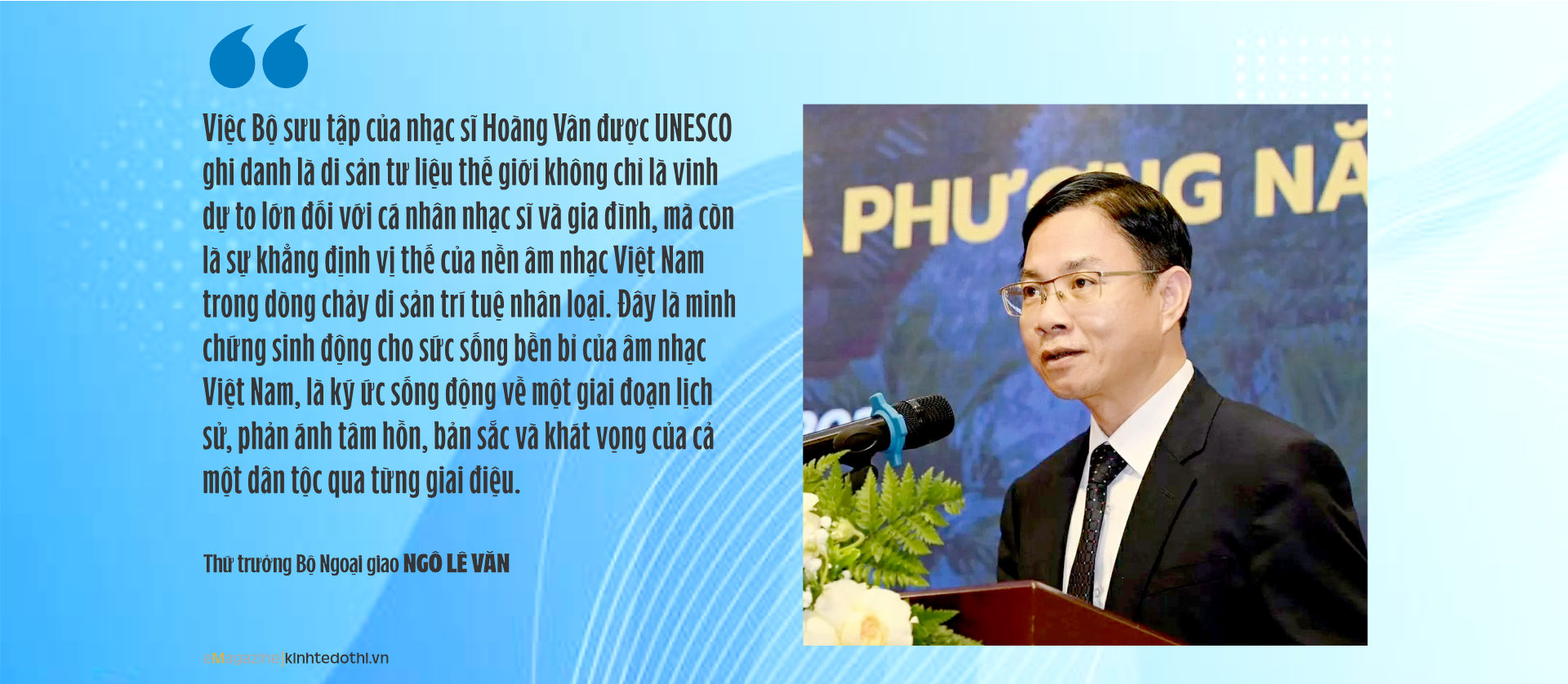 Hội đồng Tư vấn Quốc tế Chương trình Ký ức Thế giới của UNESCO đánh giá, hồ sơ của Việt Nam đáp ứng đầy đủ các tiêu chí quốc tế với những giá trị nổi bật. Bộ sưu tập của nhạc sĩ Hoàng Vân được bảo tồn tốt, có tính tiếp cận cao thông qua nền tảng số đa ngữ (https://hoangvan.org), góp phần lan tỏa giá trị văn hóa Việt Nam đến cộng đồng quốc tế. Sự ghi danh trên càng có ý nghĩa hơn khi Luật Di sản văn hóa sửa đổi được Quốc hội thông qua năm 2024 và có hiệu lực từ ngày 1/7/2025, trong đó lần đầu tiên dành riêng một chương cho di sản tư liệu, thể hiện sự quan tâm ngày càng sâu sắc của Nhà nước, các cơ quan quản lý và toàn xã hội đối với lĩnh vực này.