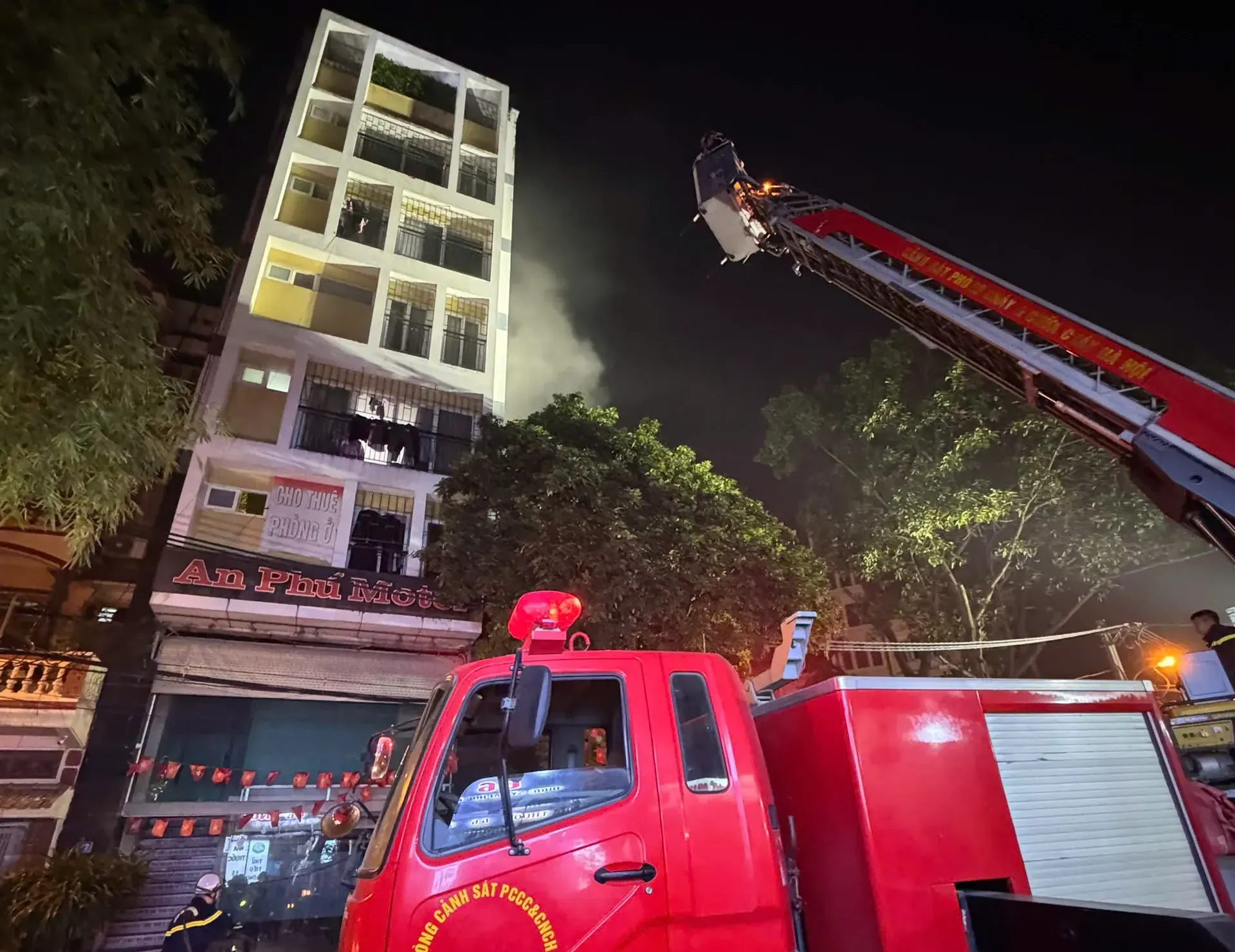 Cháy nhà nghỉ cao 8 tầng ở Hà Đông, cảnh sát cứu thoát 7 người