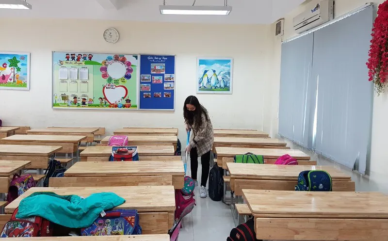 | Vệ sinh lớp học ở trường Tiểu học Kim Giang |