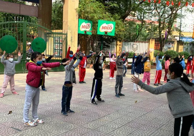 | Hoat động thể dục ngoài trời của học sinh trường Tiểu học Phan Đình Giót |