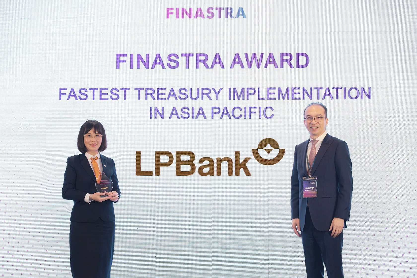 Tại sự kiện Treasury Executive Summit 2024 của Finastra, LPBank vinh dự được lựa chọn trao giải “Triển khai hệ thống Kondor Treasury nhanh nhất Châu Á - Thái Bình Dương”. Các chuyên gia của Finastra nhận định “Thông thường các ngân hàng ở Việt Nam cần từ 12 - 18 tháng để triển khai được hệ thống Kondor Treasury Front to Back nhưng với LPBank thời gian triển khai nhanh kỷ lục chỉ trong vòng 6 tháng, đây là điểm vô cùng ấn tượng với chúng tôi”.