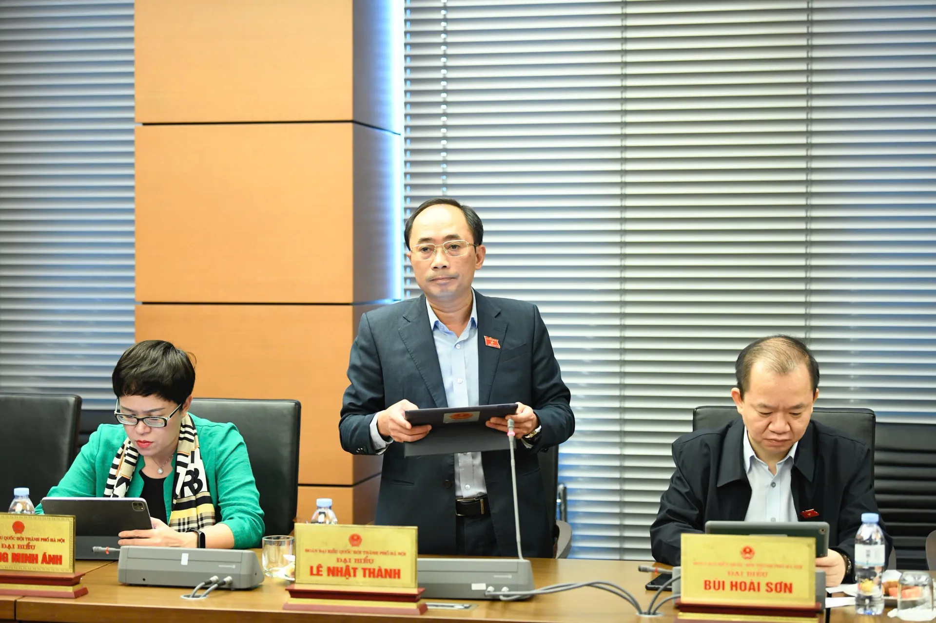 Lãnh đạo Đoàn đại biểu Quốc hội TP Hà Nội chủ trì phiên thảo luận tổ chiều 6/11. Ảnh: Như Ý