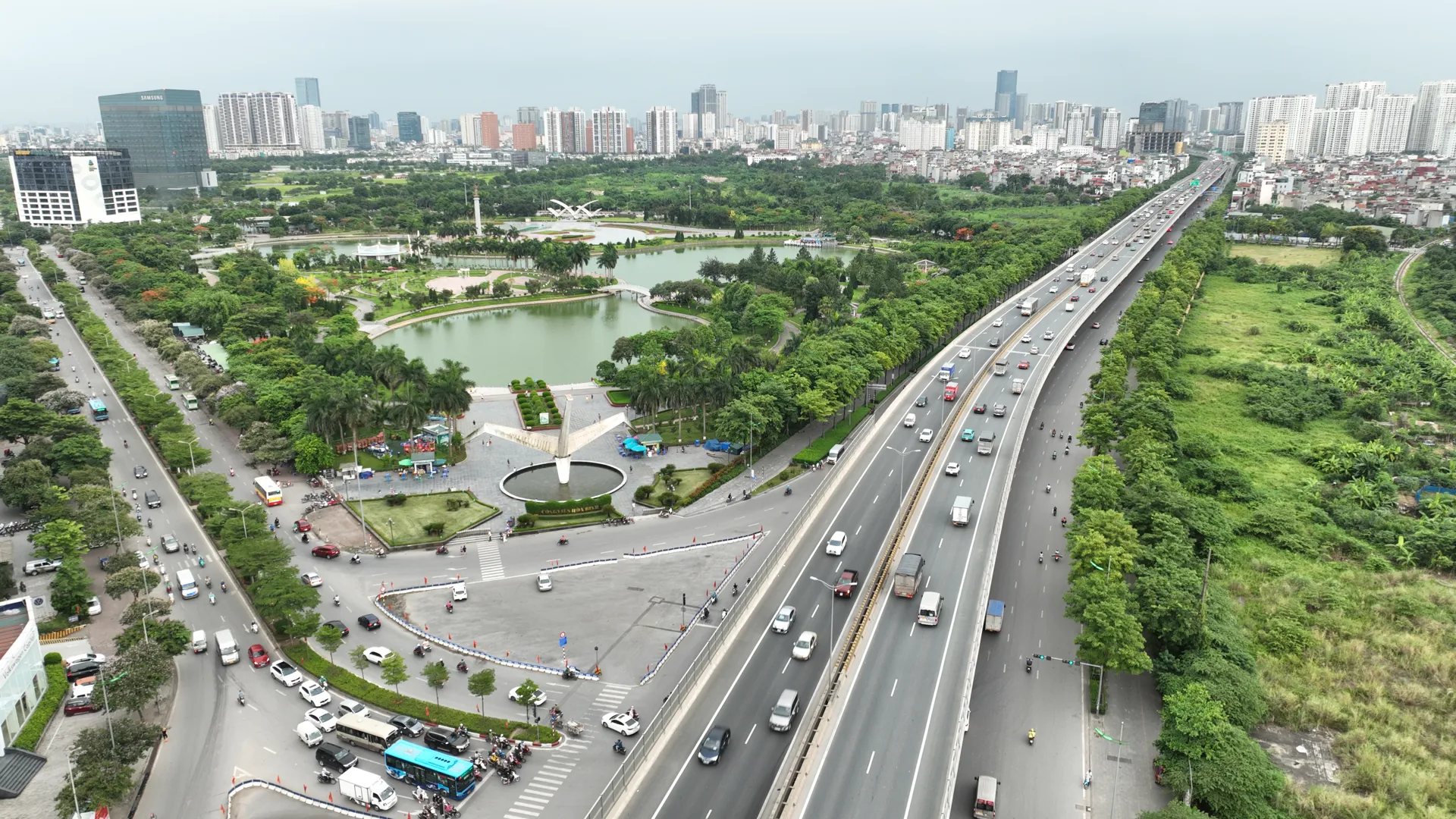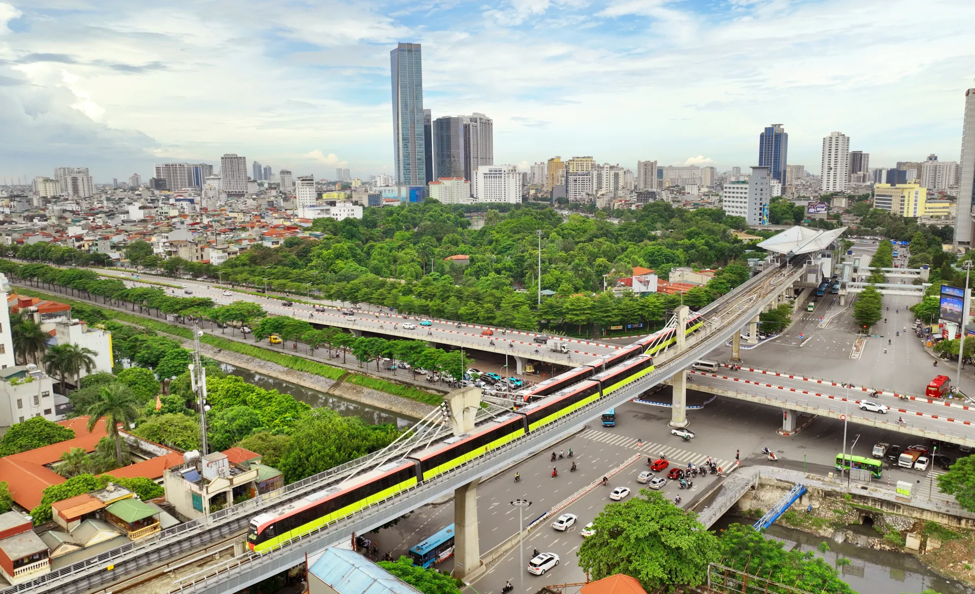 Nút giao thông Cầu Giấy, Hà Nội với hệ thống đường sắt đô thị tuyến Nhổn - Ga Hà Nội.
