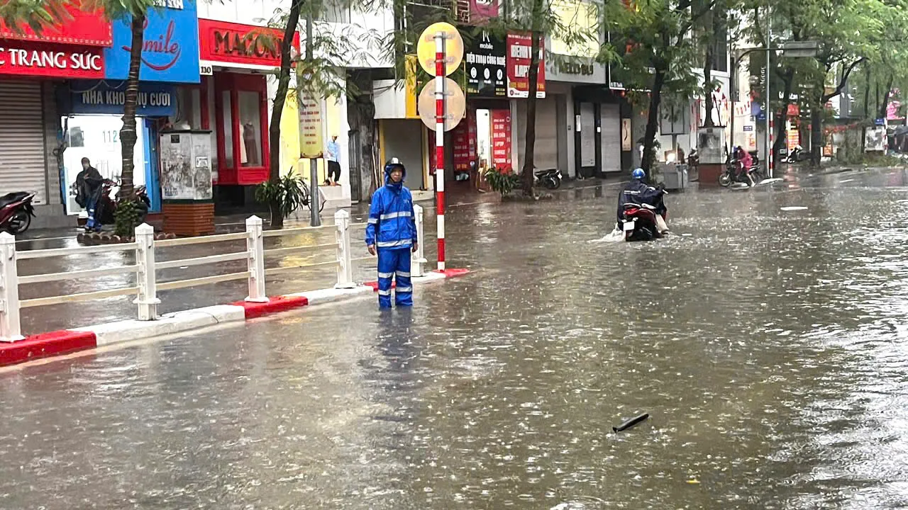 kinhtedothi - Trước diễn biến của cơn mưa kéo dài do ảnh hưởng của bão số 11 - Matmo, Phòng CSGT TP Hà Nội, Phòng Kiểm tra giao thông sở Xây Dựng đã chủ động triển khai phương án phân luồng, hỗ trợ người dân, điều tiết tại các khu vực trọng điểm, bảo đảm giao thông thông suốt, an toàn.