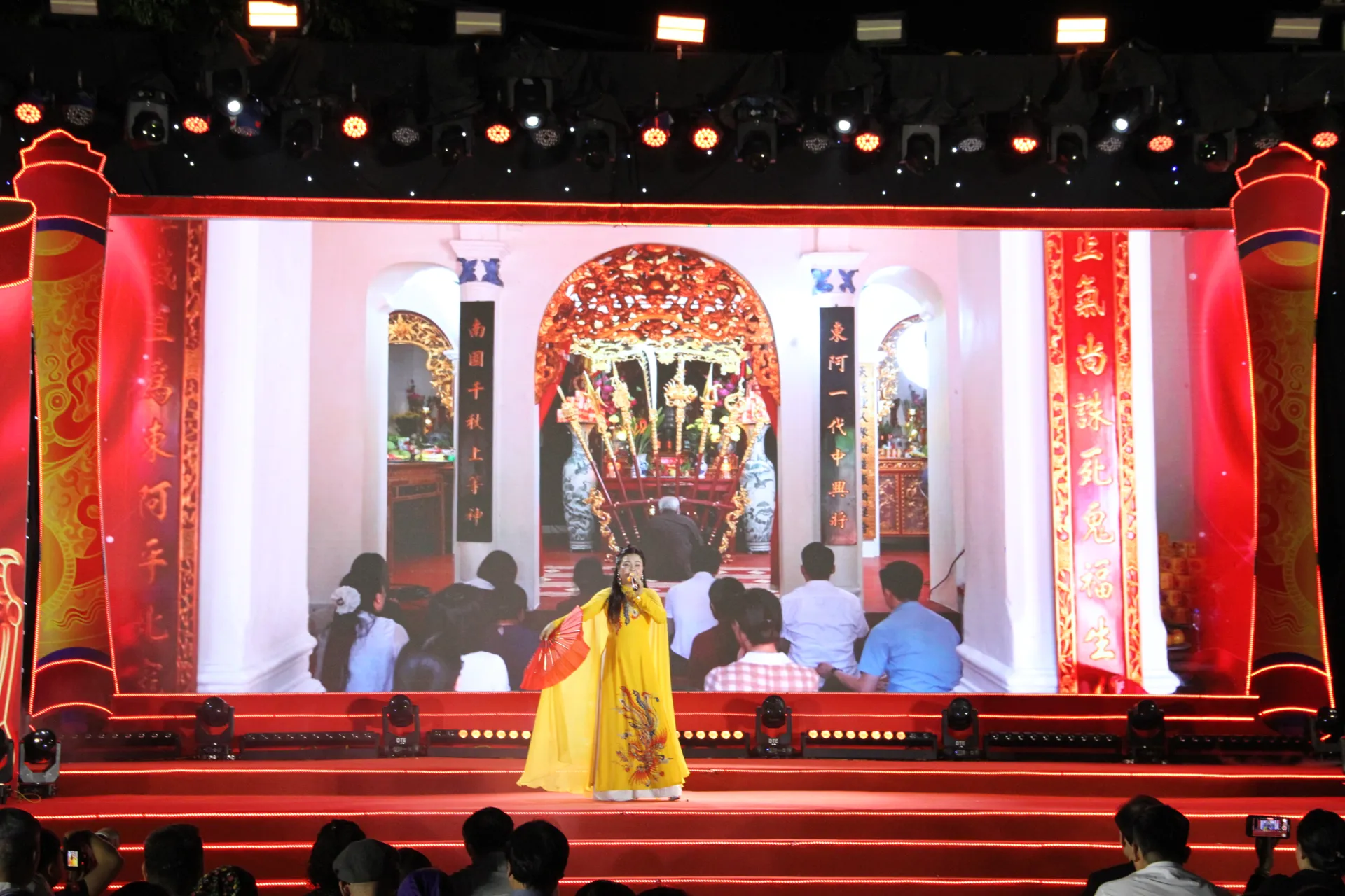 Tiết mục hát Chèo mới: “Linh thiêng đền cổ Đức Trần Triều” do ca sĩ Trần Thục Hiền biểu diễn.