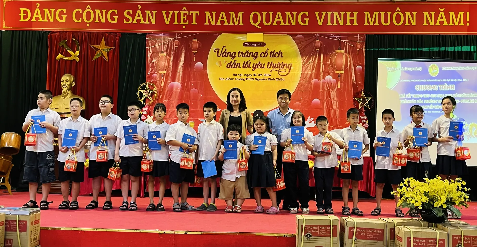 Chiều 16/9, tại Trường PTCS Nguyễn Đình Chiểu, Sở GD&ĐT Hà Nội tổ chức Tết Trung thu gắn gọn và ý nghĩa với tên gọi “Vầng trăng cổ tích, dẫn lối yêu thương”; tặng quà cho học sinh 3 trường chuyên biệt tại Hà Nội gồm các trường: PTCS Nguyễn Đình Chiểu, PTCS Xã Đàn và Tiểu học Bình Minh.