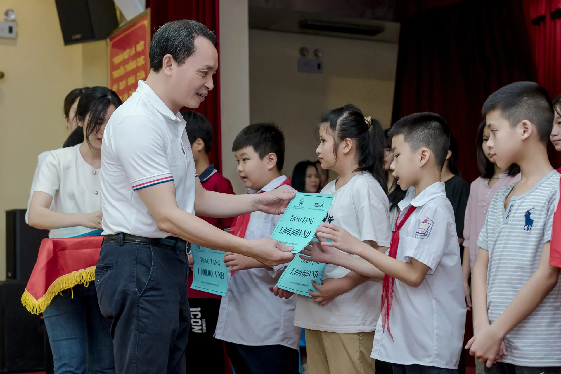 "Hy vọng rằng với những phần quà này giúp các em có thêm điều kiện học tập, động viên tinh thần, tiếp thêm niềm tin và nghị lực, để các em tin rằng luôn có những tấm lòng nhân ái, sẵn sàng sẻ chia, giúp các em vững bước trên chặng đường phía trước" - ông Bùi Trung Kiên nhấn mạnh.