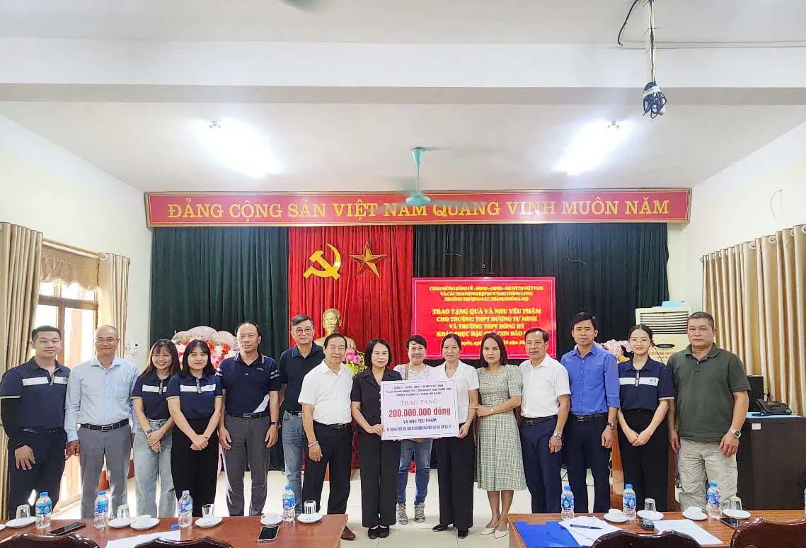 MTTQ phường Thượng Cát phối hợp cùng các DN tại Khu công nghiệp Nam Thăng Long tổ chức hỗ trợ giáo dục vùng lũ tỉnh Thái Nguyên.