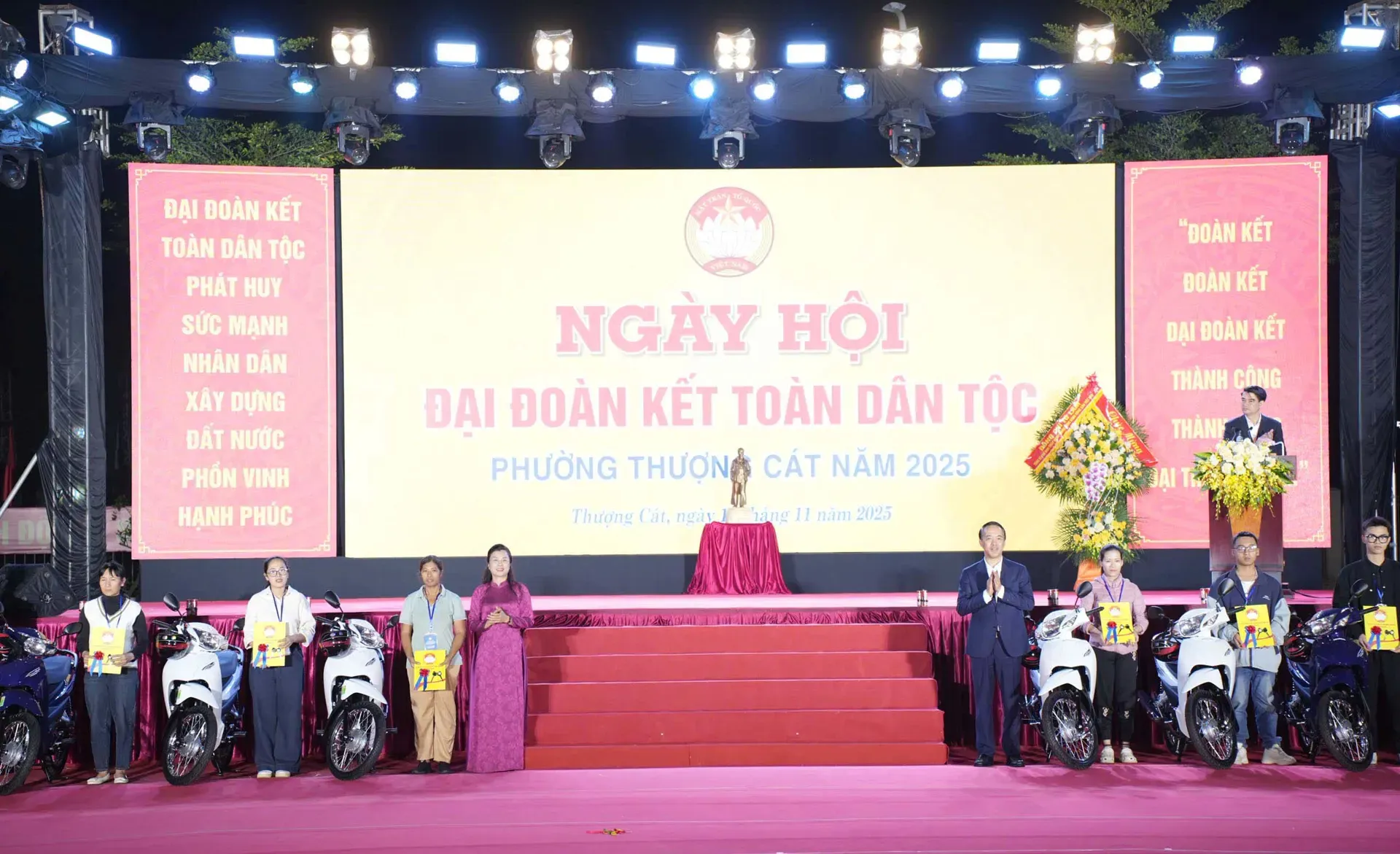 Phát huy truyền thống “Lá lành đùm lá rách”, MTTQ phường Thượng Cát đã phối hợp cùng các DN tại Khu công nghiệp Nam Thăng Long tổ chức hỗ trợ giáo dục vùng lũ tỉnh Thái Nguyên. Đoàn đã trực tiếp trao tặng quà và nhu yếu phẩm thiết yếu cho trường THPT Dương Tự Minh và THPT Đồng Hỷ (tỉnh Thái Nguyên) nhằm khắc phục hậu quả nặng nề sau cơn bão số 11, giúp thầy và trò sớm ổn định việc dạy và học. Bão số 11 có thể làm hư hại trường lớp, nhưng không thể quật ngã được sự kiên cường khi có sự chung tay của cộng đồng. Những hoạt động thiết thực này đã khẳng định vai trò nòng cốt của MTTQ phường trong việc kết nối những "trái tim hồng", xây dựng một cộng đồng Thượng Cát đoàn kết và giàu lòng nhân ái.