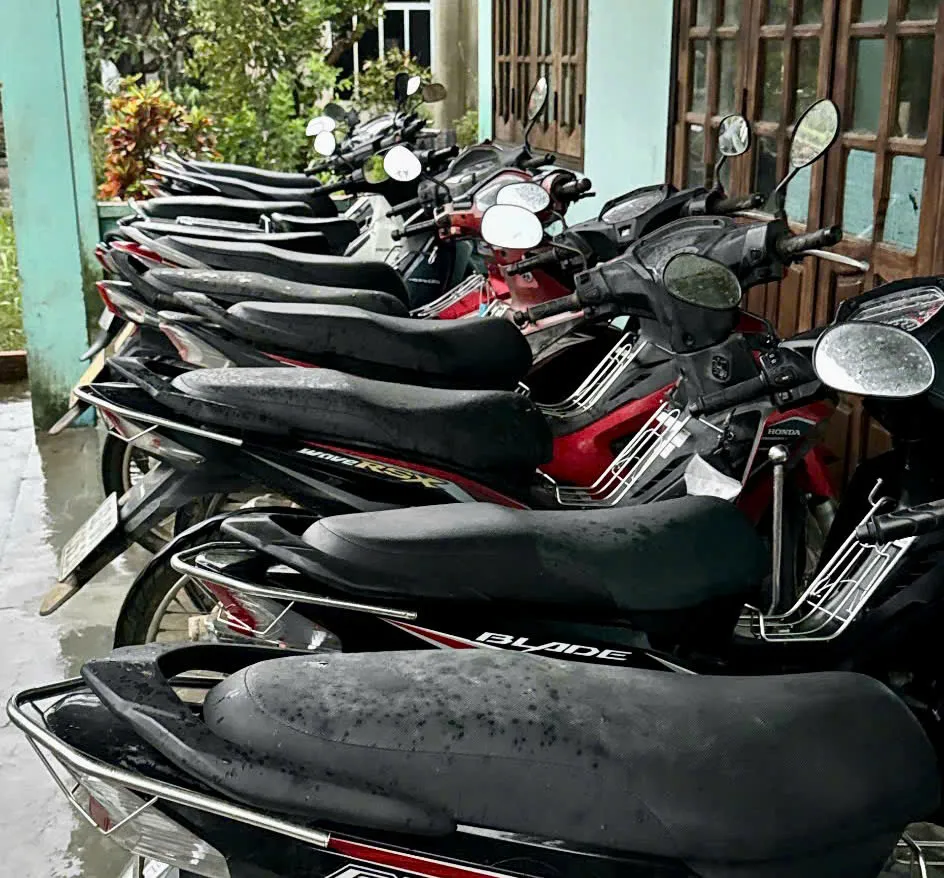 Tại xã Ái Nghĩa, người dân chủ động đưa xe máy đến nơi cao trước tình hình nước tiếp tục dâng lên.