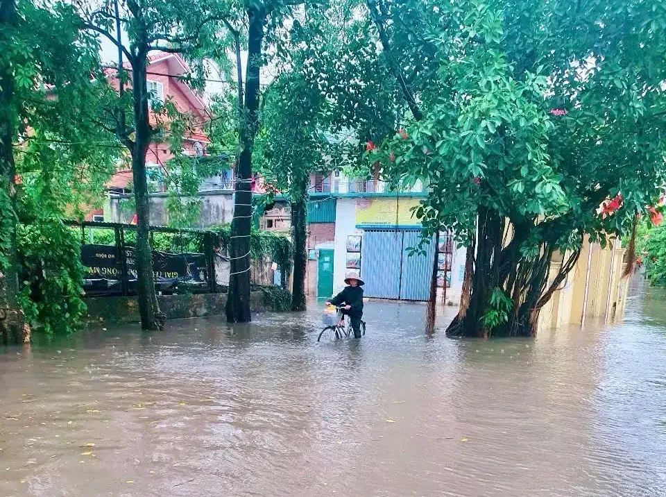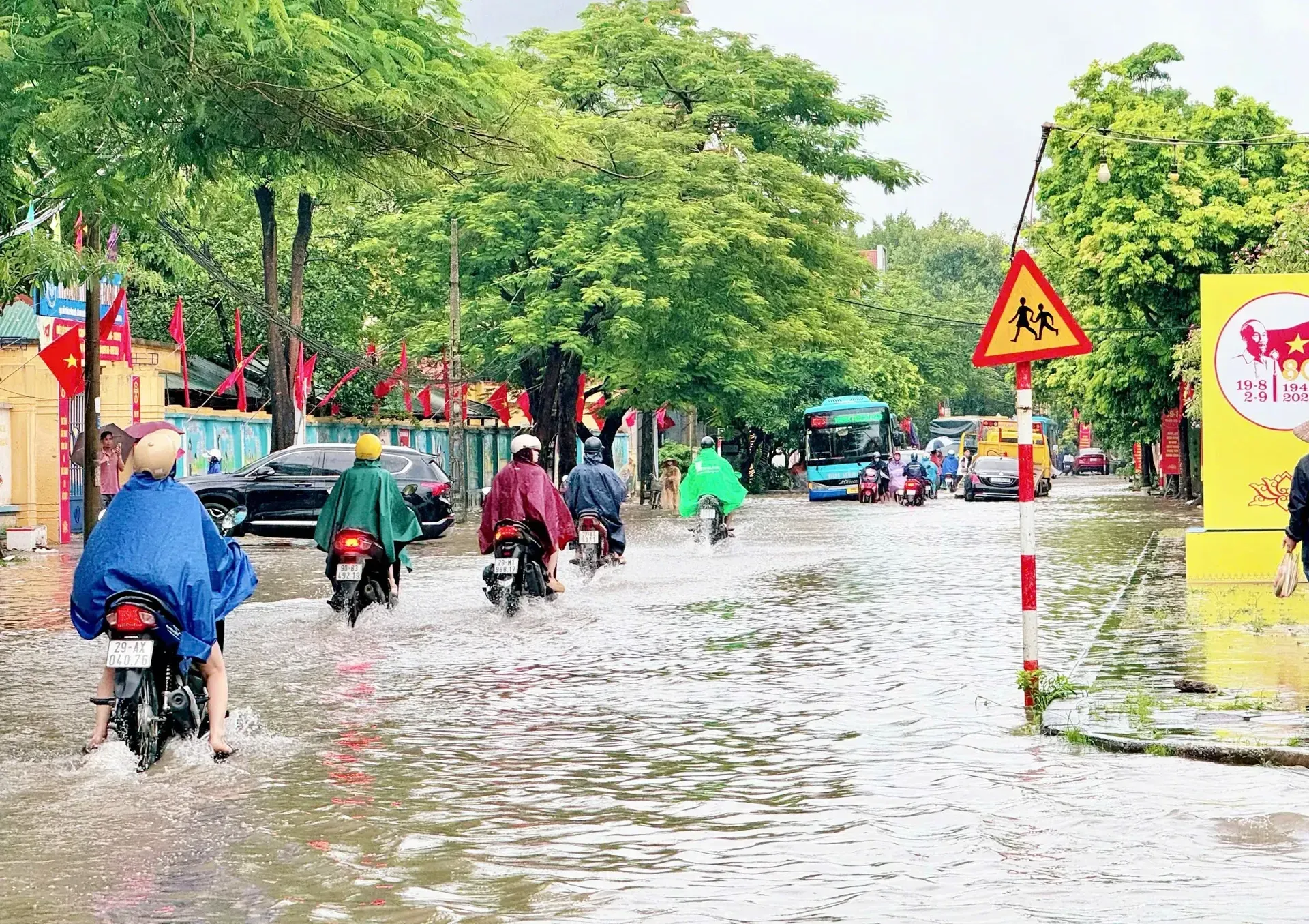 Kinhtedothi - Do ảnh hưởng của bão số 5, trận mưa lớn diễn ra từ chiều 25 đến sáng 26/8 với lượng mưa trên 150mm đã khiến nhiều tuyến đường, khu dân cư, cơ quan, trường học trên địa bàn xã Nam Phù bị ngập nặng. Nhiều đoạn đường, nước tràn vào nhà dân gây ảnh hưởng đến sinh hoạt; các phương tiện giao thông cũng bị chết máy dọc đường.