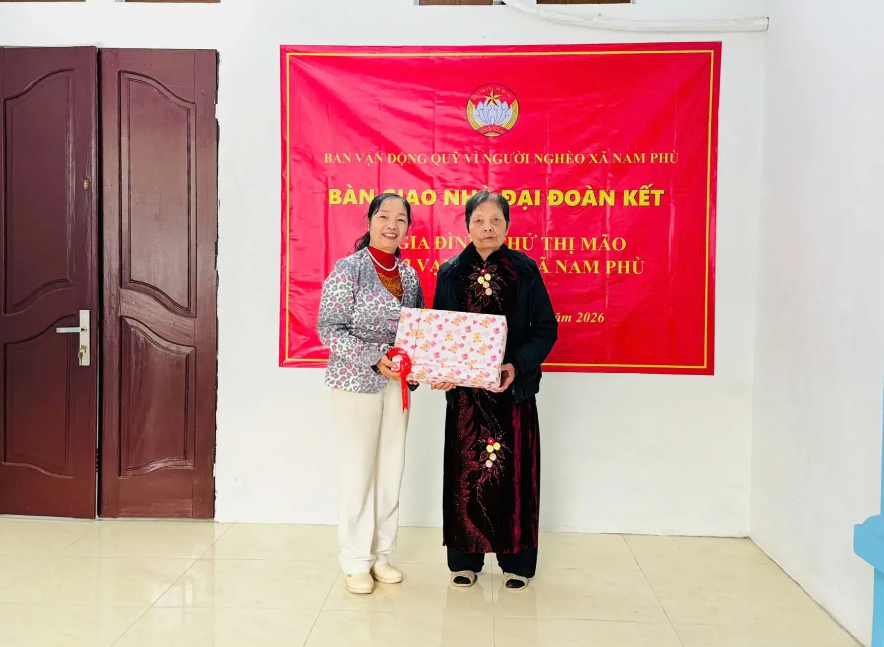 Ngày 14/1, Ủy ban MTTQ Việt Nam xã Nam Phù đã tổ chức lễ bàn giao nhà Đại đoàn kết năm 2026 cho 2 hộ gia đình có hoàn cảnh đặc biệt khó khăn tại thôn 2 Vạn Phúc, gồm: bà Chử Thị Mão và ông Trần Hữu Lập. Buổi lễ diễn ra trong không khí ấm cúng, thấm đượm nghĩa tình trước thềm năm mới.