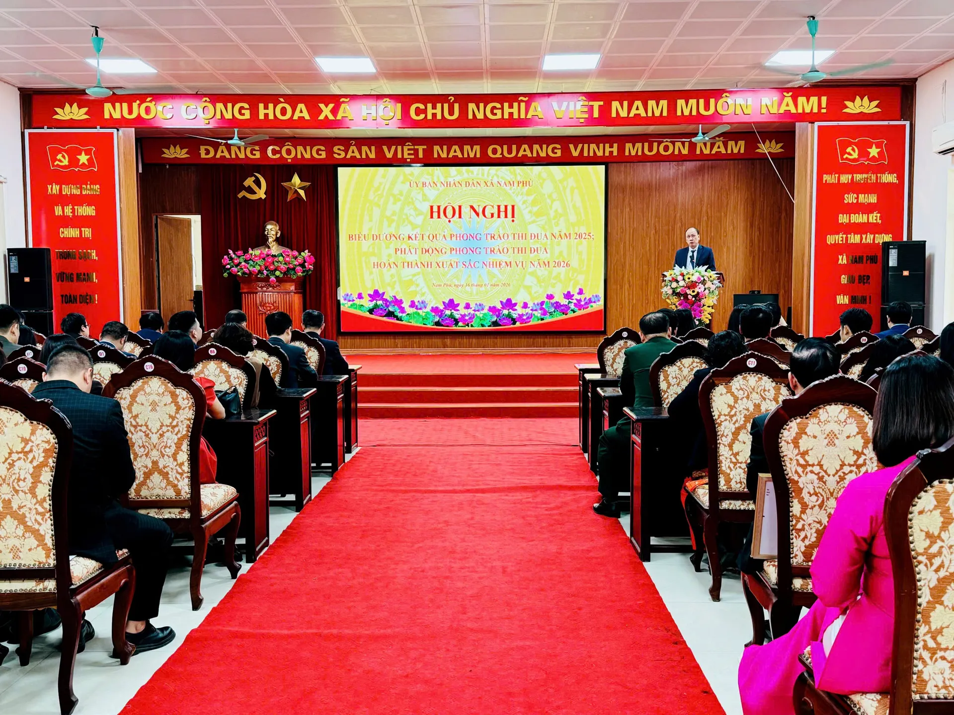 Kinhtedothi-Ngày 16/1, UBND xã Nam Phù tổ chức hội nghị biểu dương kết quả phong trào thi đua năm 2025; phát động phong trào thi đua hoàn thành xuất sắc nhiệm vụ năm 2026. Hội nghị là dịp đánh giá toàn diện kết quả phong trào thi đua yêu nước trong năm qua, đồng thời xác định phương hướng, giải pháp tạo động lực mới, khí thế mới để hoàn thành các nhiệm vụ chính trị trong năm 2026.