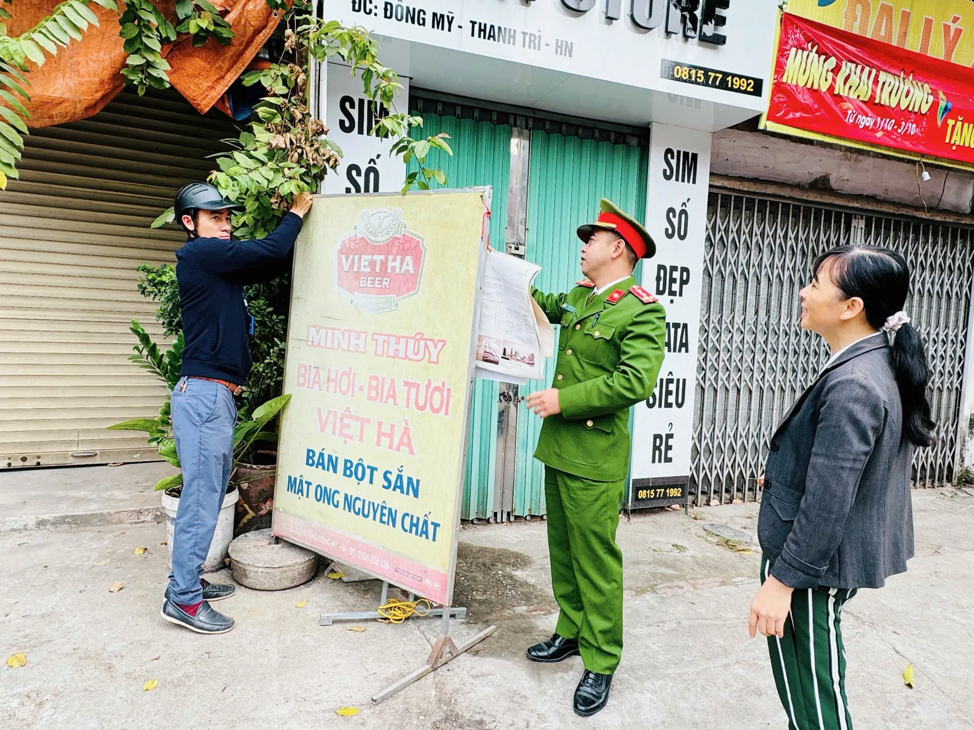 Bên cạnh việc xử lý vi phạm, lực lượng chức năng xã Nam Phù tiếp tục tuyên truyền đến người dân ý thức giữ gìn trật tự văn minh đô thị.
