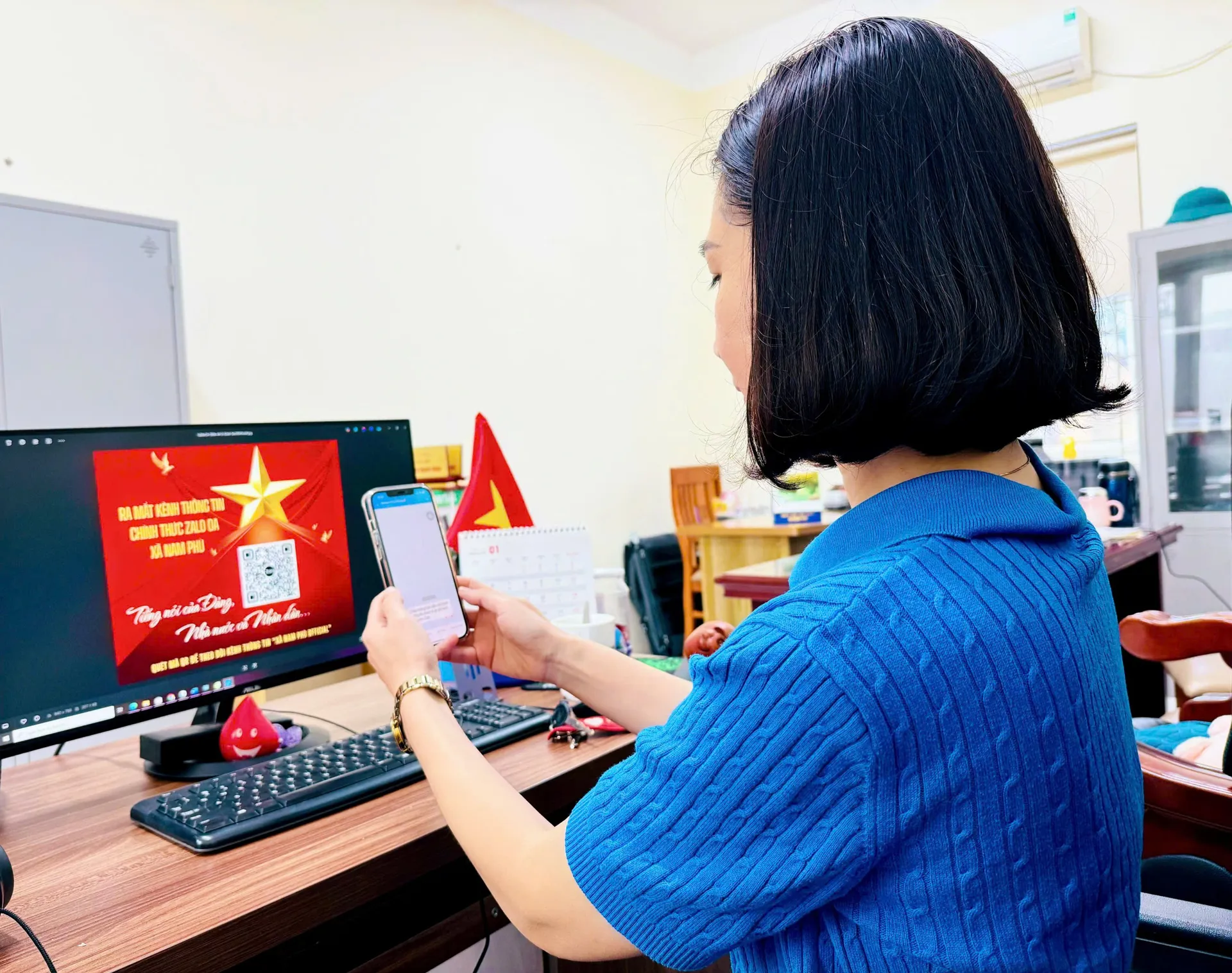 Cán bộ xã Nam Phù sử dụng kênh Zalo OA vào công việc.