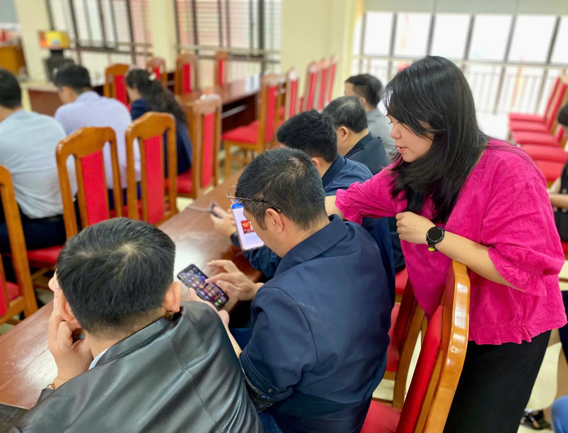 Lãnh đạo Phòng Văn hóa - Xã hội xã Nam Phù giới thiệu kênh Zalo OA cho các đại biểu.