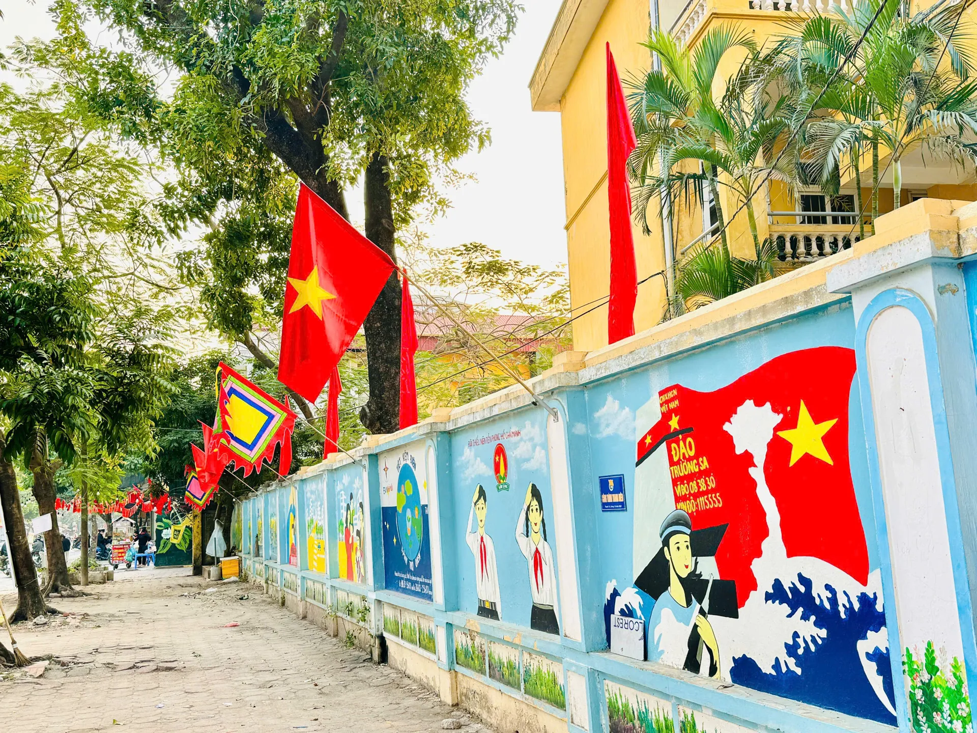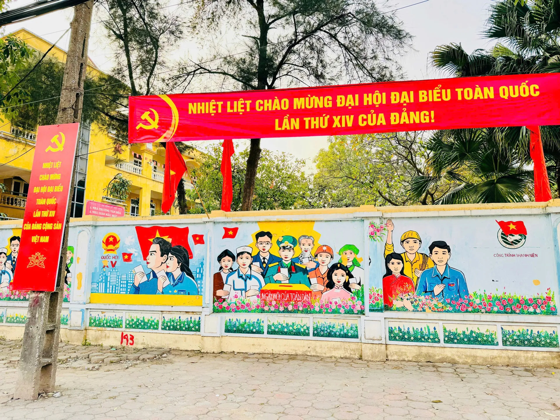 Treo cờ, vẽ tranh cổ động tại các khu vực cơ quan, đơn vị.