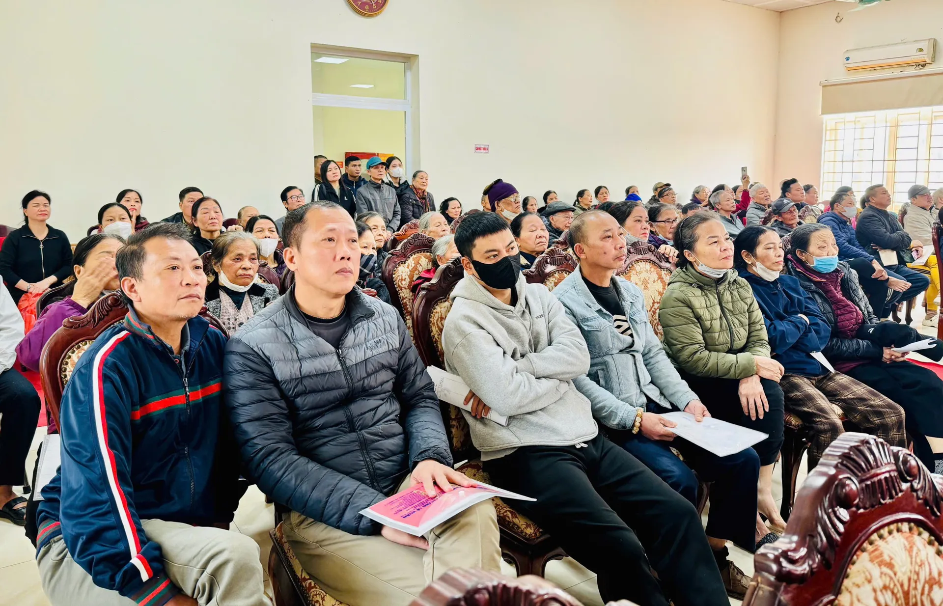 Nhân dân xã Nam Phù lắng nghe những nội dung chính sách liên quan đến việc triển khai dự án.