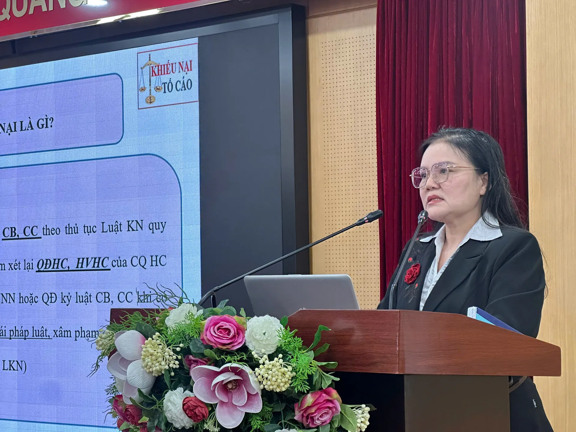 Tại buổi tập huấn, báo cáo viên là ThS Phạm Hồng Lương - Phó Trưởng khoa nghiệp vụ Giải quyết khiếu nại, tố cáo và phòng, chống tham nhũng (Trường Cán bộ Thanh tra) đã truyền đạt các kiến kiến thức chuyên sâu về các quy định pháp luật mới nhất về tiếp công dân, giải quyết khiếu nại, tố cáo và tiếp nhận đơn thư.