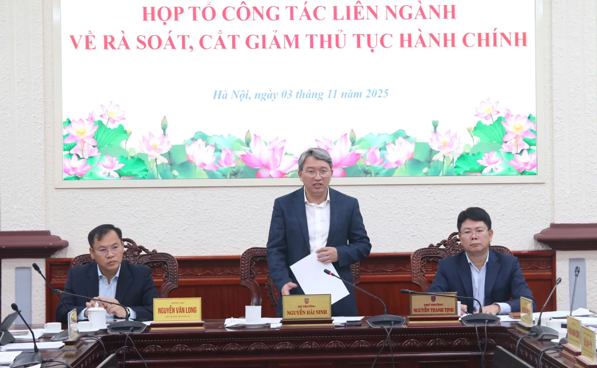 Kinhtedothi - Ngày 3/11, Bộ trưởng Bộ Tư pháp Nguyễn Hải Ninh - Tổ trưởng Tổ Công tác liên ngành rà soát, đánh giá thủ tục hành chính (TTHC) trên phạm vi toàn quốc đã chủ trì cuộc họp Tổ công tác liên ngành.